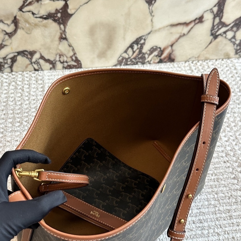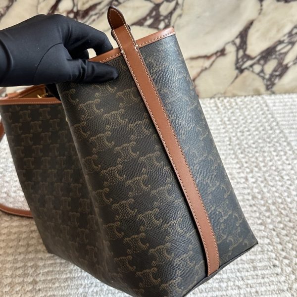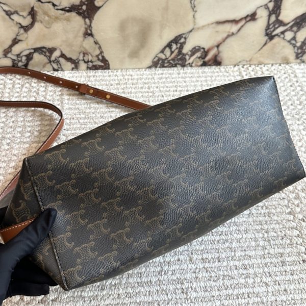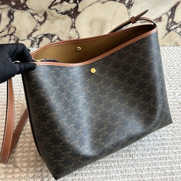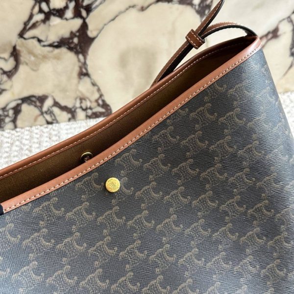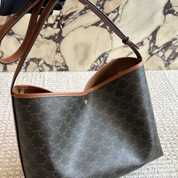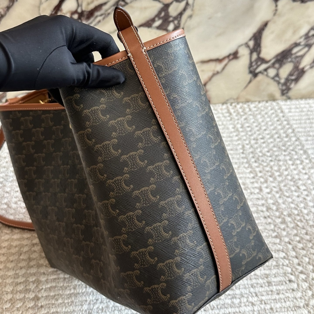The Celine Soft Shopper Bag in Triomphe Canvas is a sophisticated and practical tote designed for everyday luxury. Crafted from the iconic Triomphe canvas with leather trimmings, it features a spacious silhouette that effortlessly accommodates daily essentials. The bag’s relaxed, open-top design is secured by a snap button closure and finished with adjustable leather shoulder straps for personalized comfort.