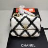 Chanel 19 Flap Bag Crochet Gold And Silver Tone White Black