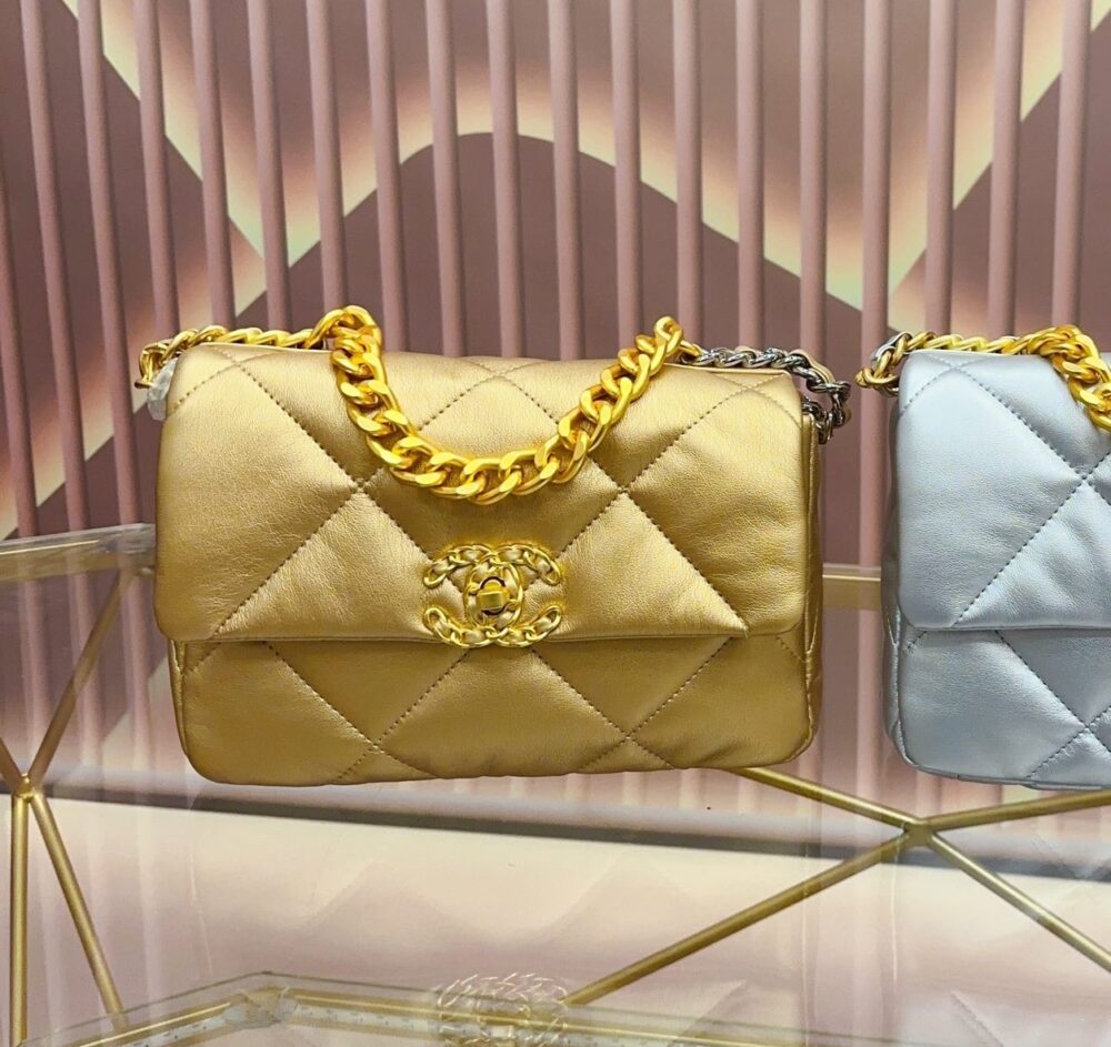 The Chanel 19 Flap Bag in radiant gold is a bold expression of modern elegance, blending timeless quilting with striking oversized chains. Instantly iconic, it embodies luxury and prestige, making every appearance unforgettable.