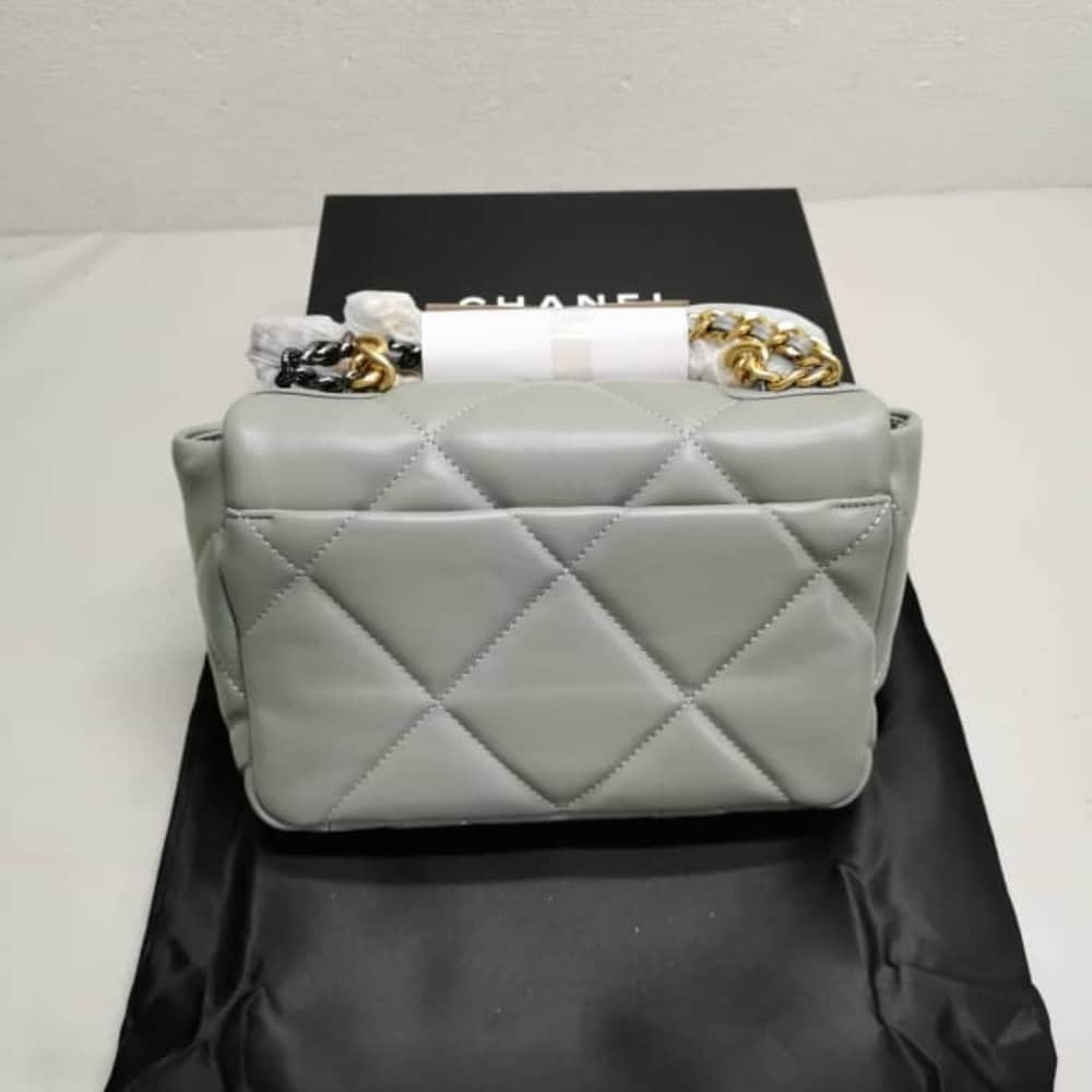 The Chanel 19 Flap Bag in light grey redefines modern elegance with its bold quilting and luminous dual-tone chain. Effortlessly sophisticated, it radiates prestige and timeless allure, making it the ultimate statement of refined luxury.