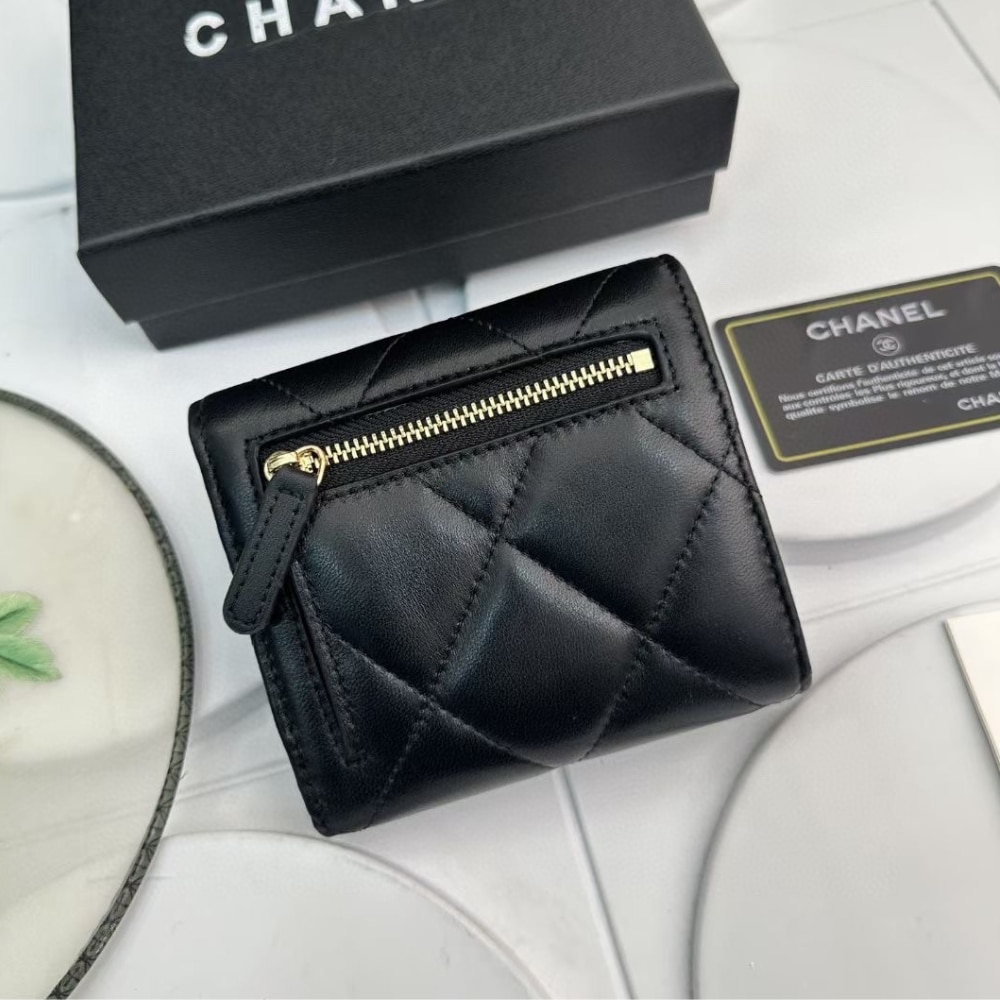 The Chanel 19 Flap Card Holder in black captures the essence of Parisian chic in a compact, refined design. With its signature quilting and bold emblem, it exudes timeless elegance, making every detail a statement of sophistication and prestige.