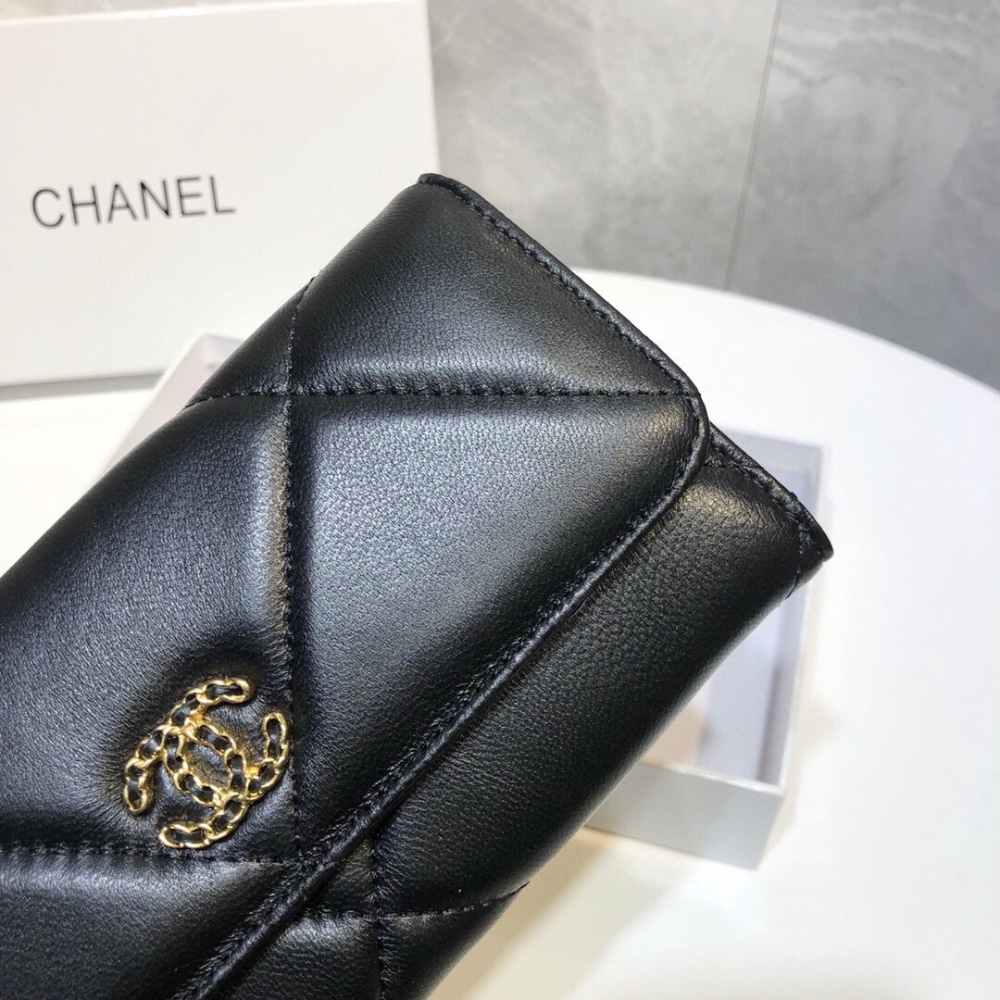 Chanel 19 Flap Long Wallet Black