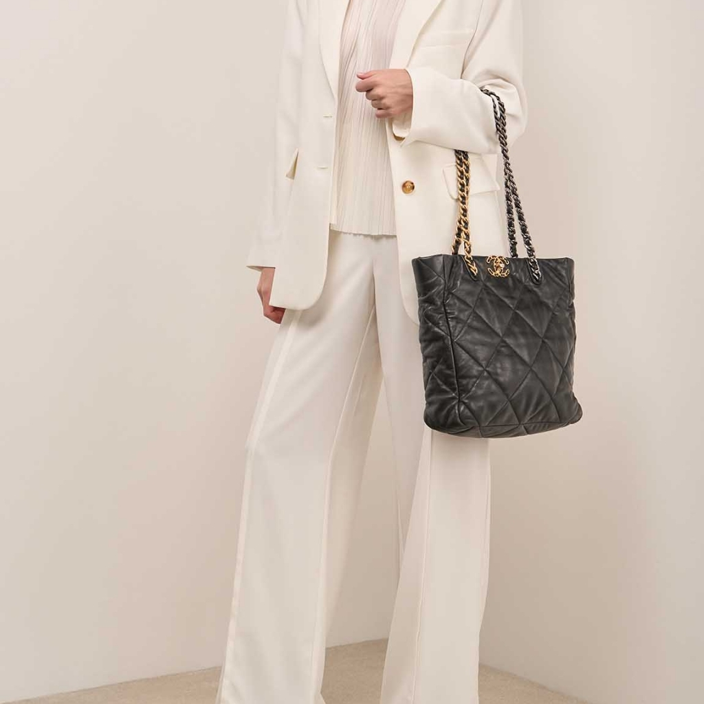 Shopping Bags of the Fall-Winter 2022/23 Pre-Collection collection: CHANEL 19 Shopping Bag, gold-tone, silver-tone & ruthenium-finish metal, black on the CHANEL official website.