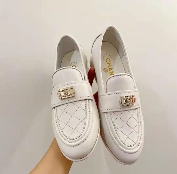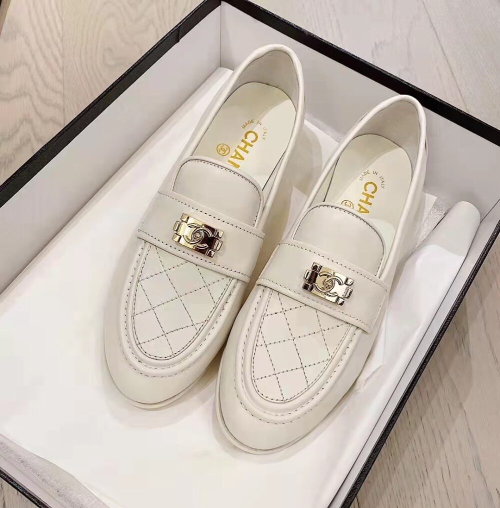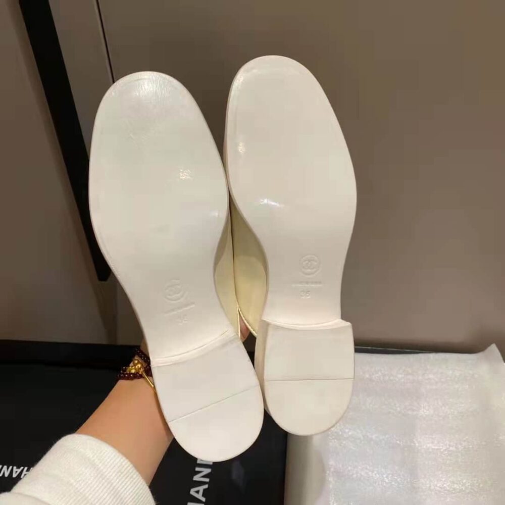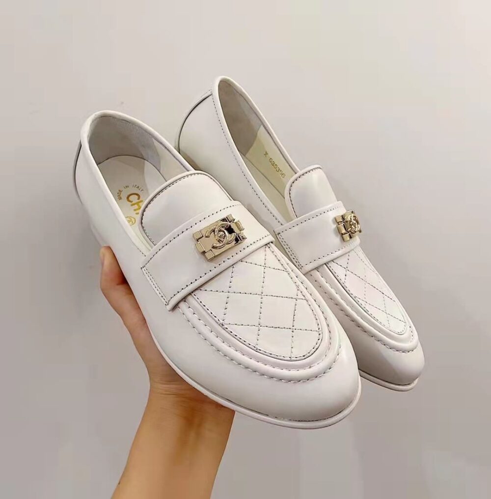 Chanel 20B Quilted Boy Lego Metal Cc Logo Gold Mule Slip On Flat Loafers White
