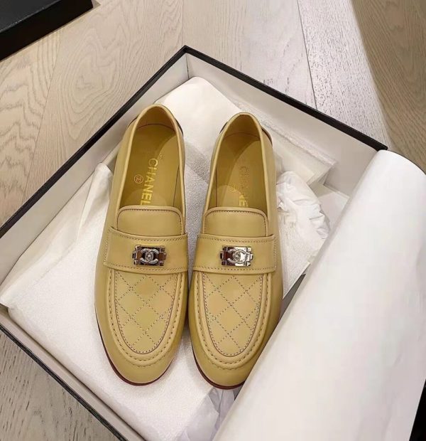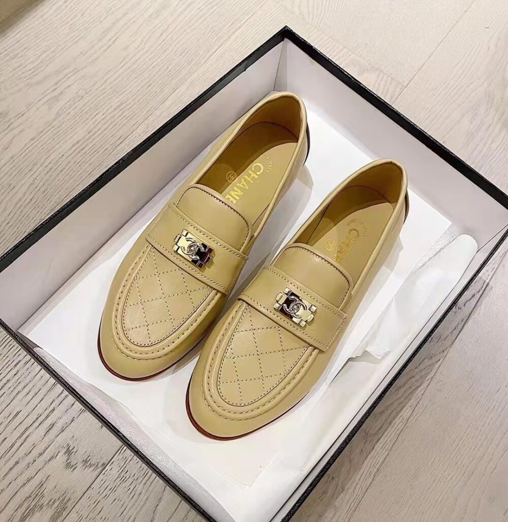 Chanel 20B Quilted Boy Lego Metal Logo Gold Mule Slip On Flat Loafers Beige