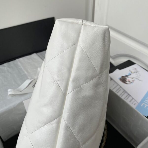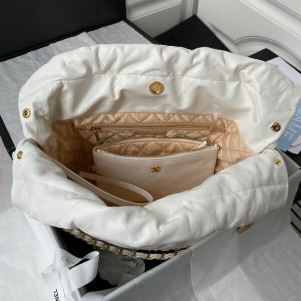The Chanel 22 Handbag in white exudes effortless sophistication, blending modern allure with the timeless prestige of the House. With its bold chain accents and refined silhouette, it stands as a statement of elegance for those who embody confidence and elevated style.