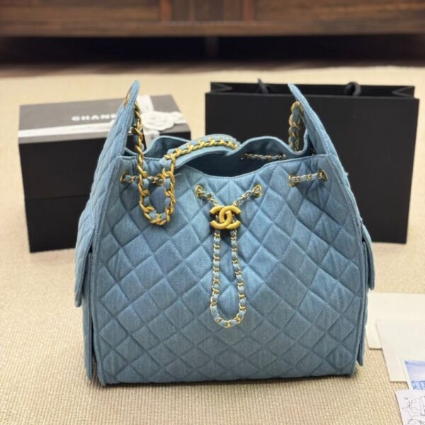 Chanel 25 Medium Handbag Washed Denim Blue And Gold Tone Metal
