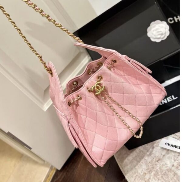 The Chanel 25 Small Handbag in light pink with metallic sheen and gold-tone accents radiates playful elegance wrapped in timeless sophistication. Its graceful design and iconic details make it the ultimate symbol of refined femininity and elevated style.