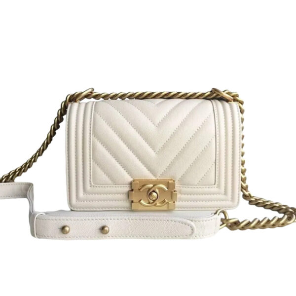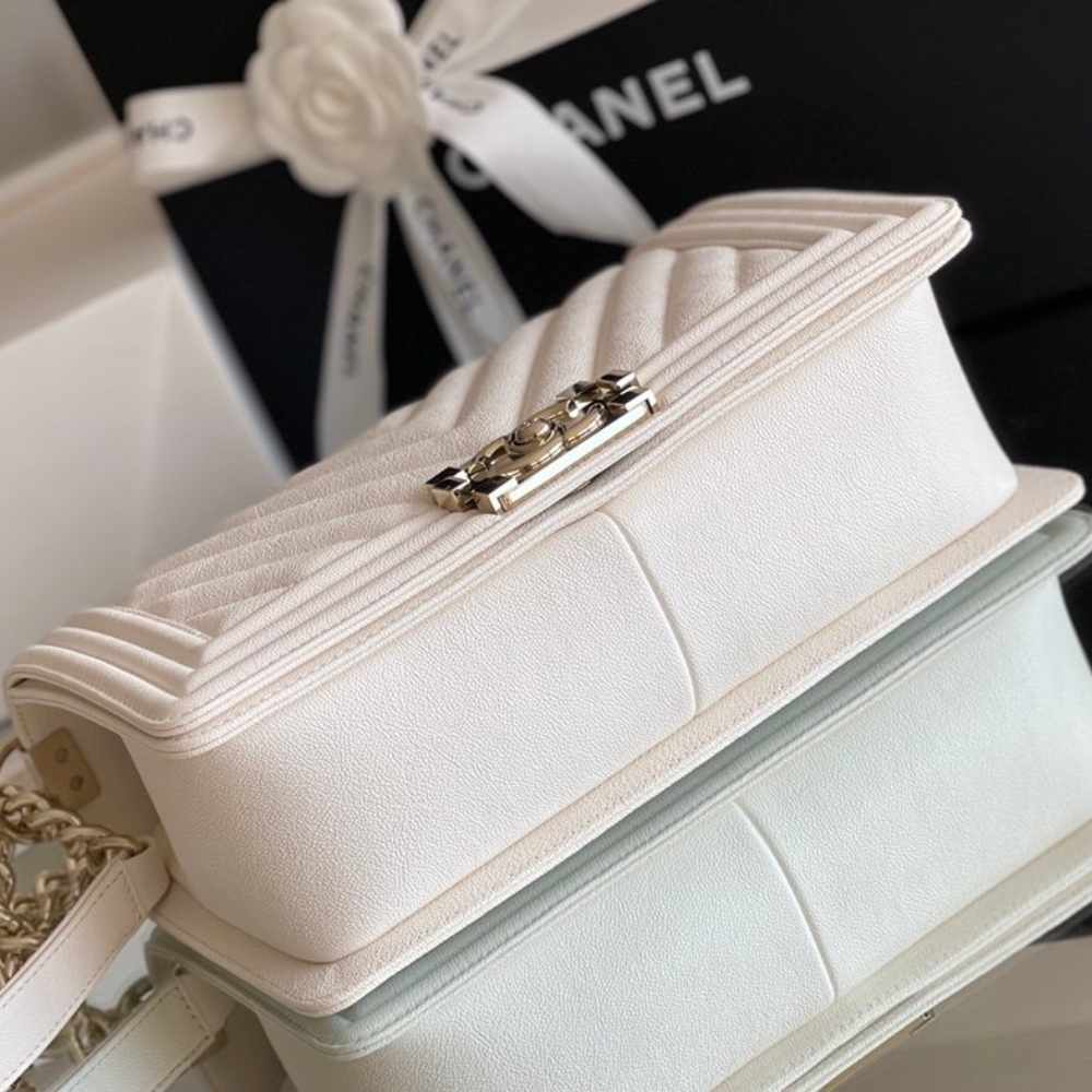 Chanel Boy Bag White Gold Hardware