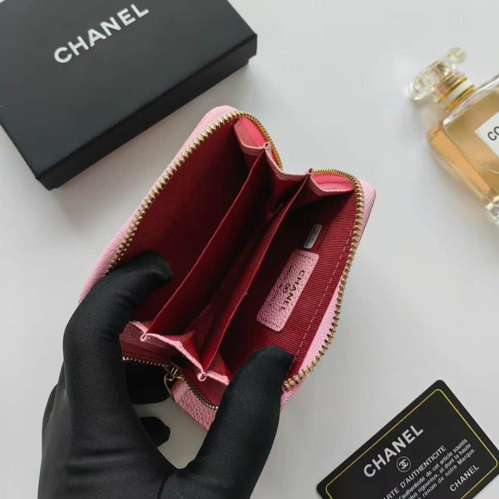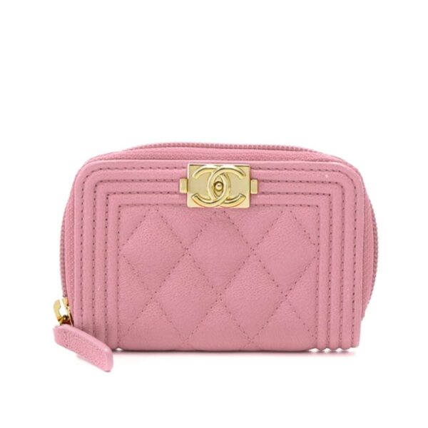 Chanel Boy Flap Card Holder Wallet Gold Pink
