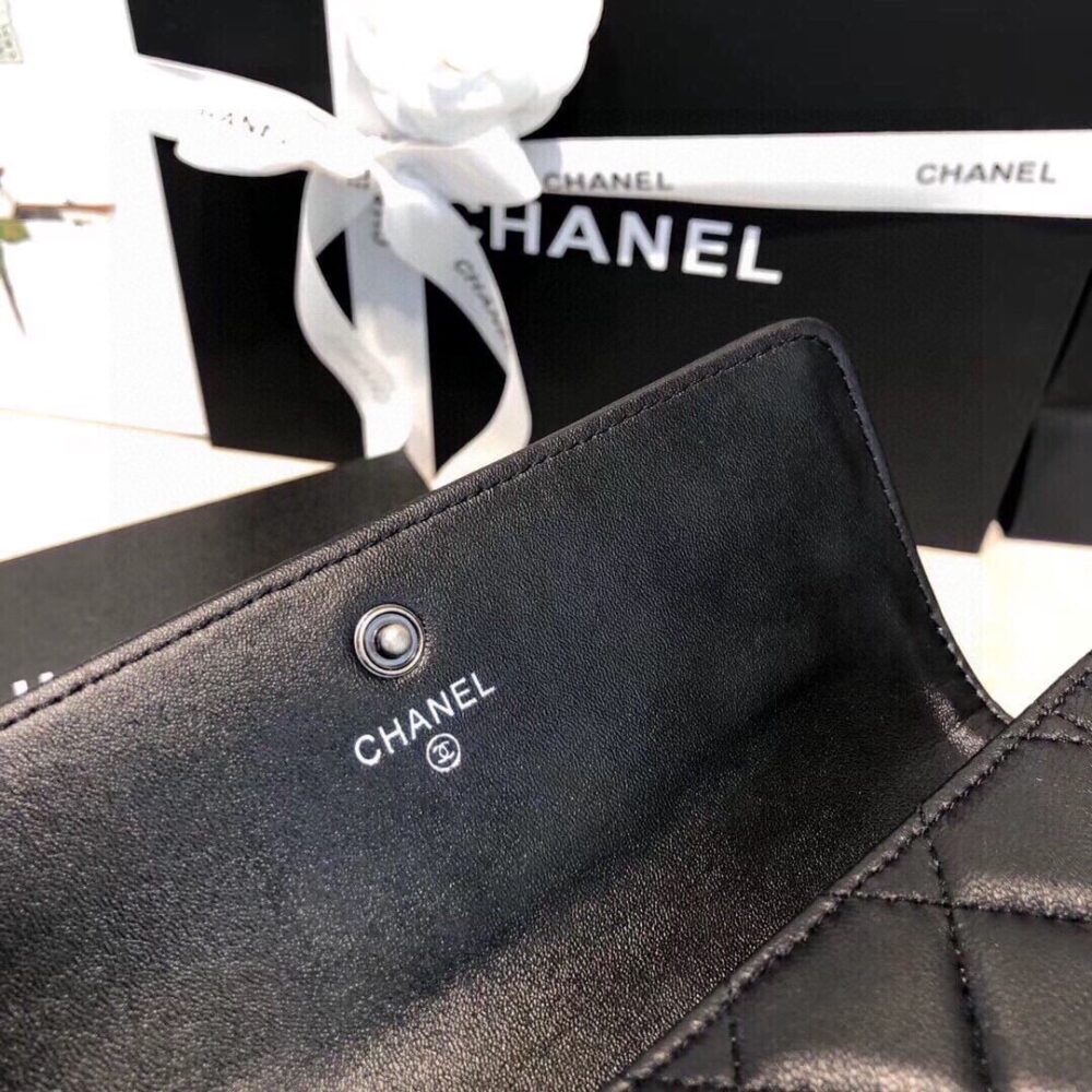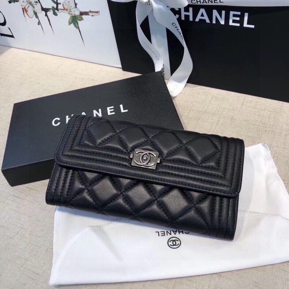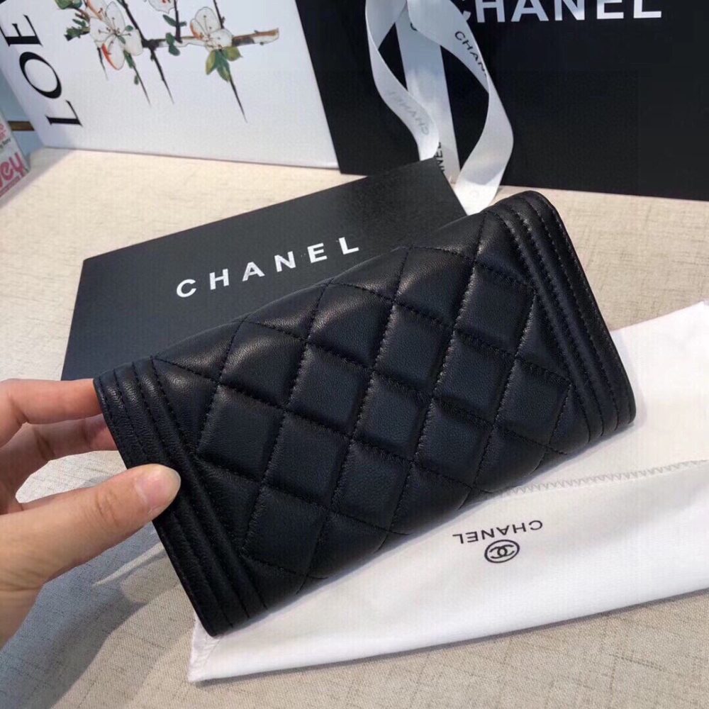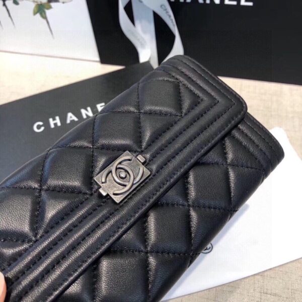 Chanel Boy Flap Long Wallet Ruthentium Hardware Black