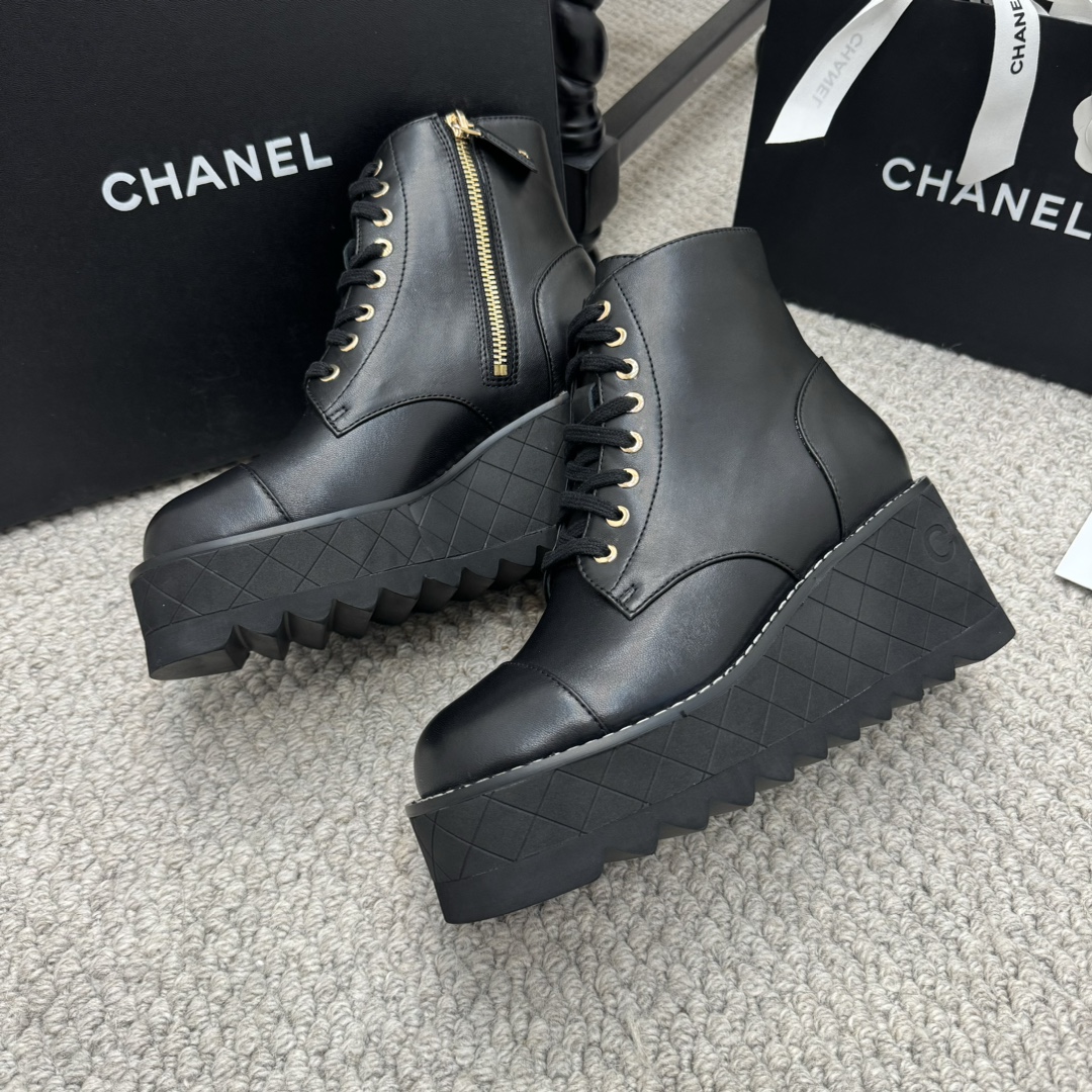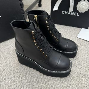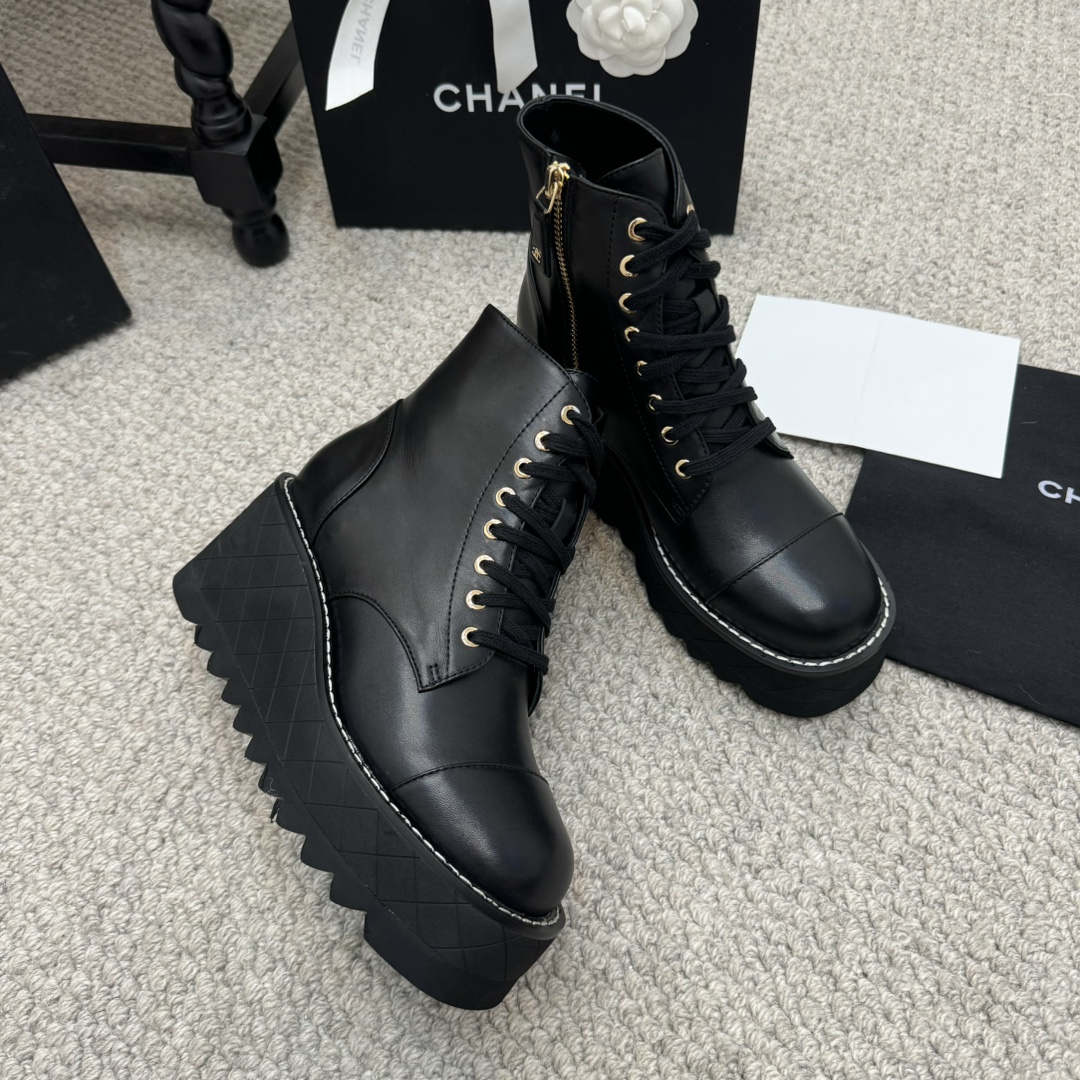 Chanel Calfskin Pearl Cap Toe Ankle Boots