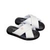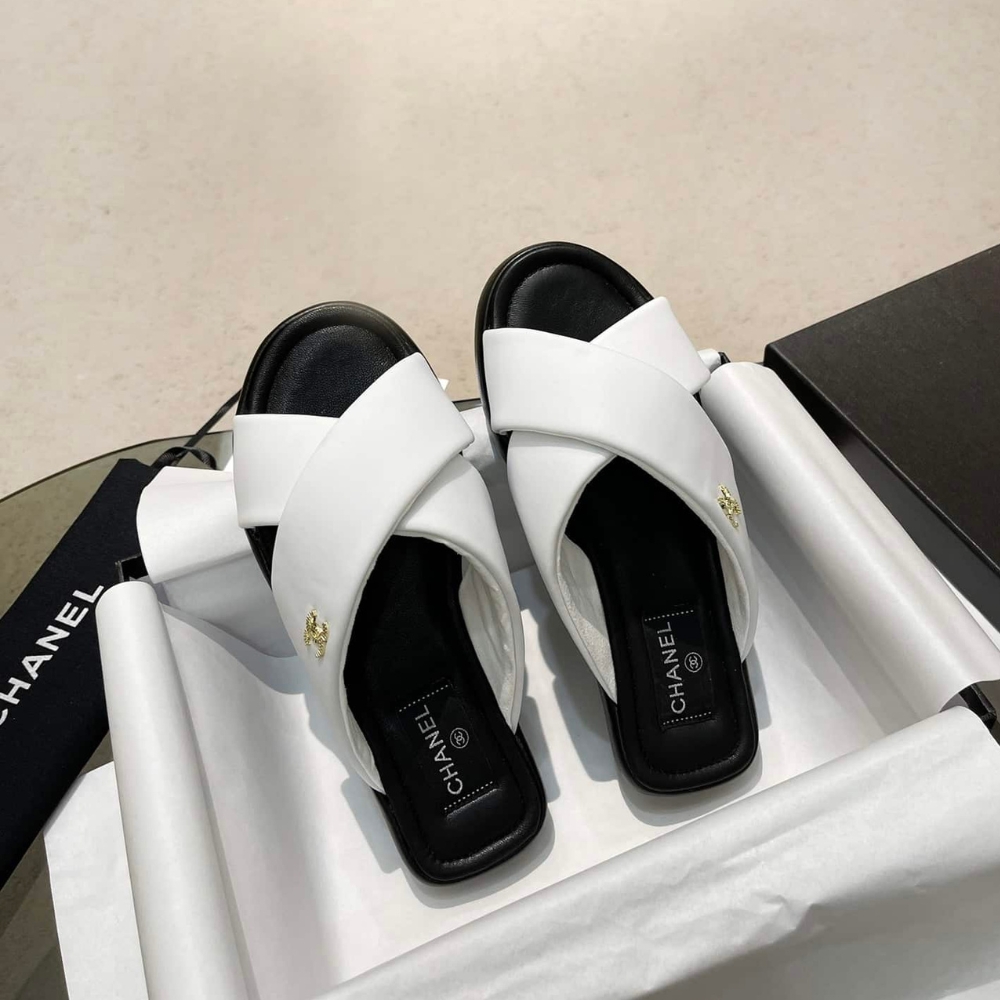Chanel CC Logo Criss Cross Slides White