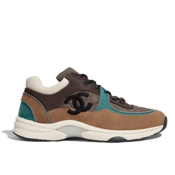 Chanel CC Logo Low Top Trainer Sneakers Brown And White