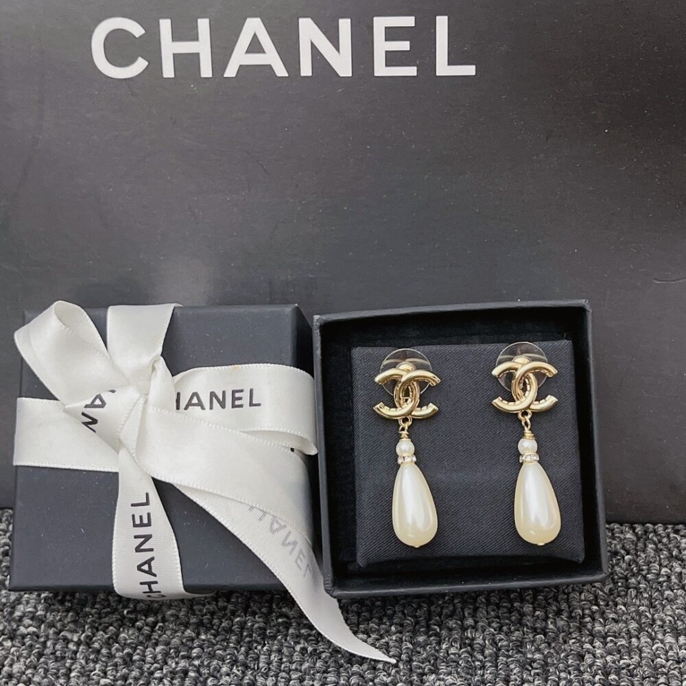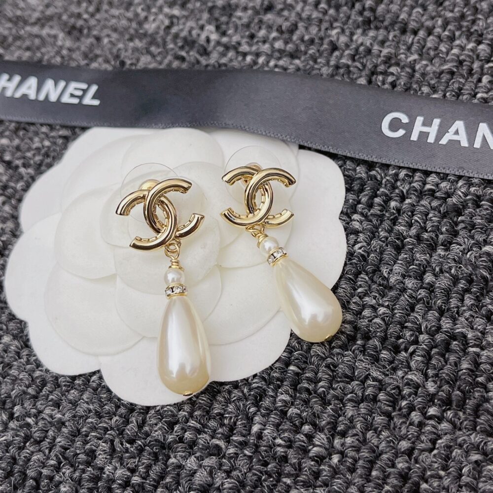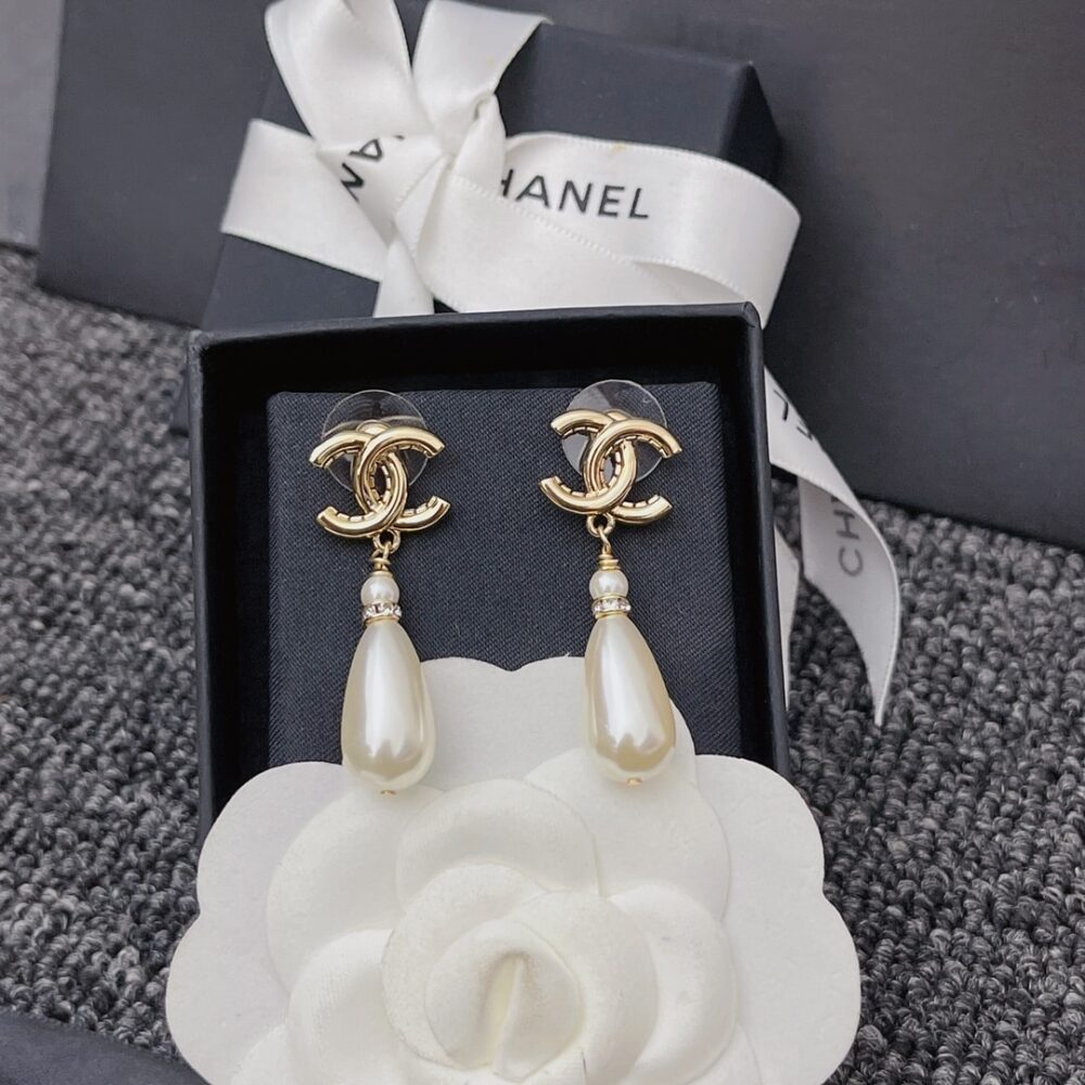 Chanel CC Pearl Drop Earrings