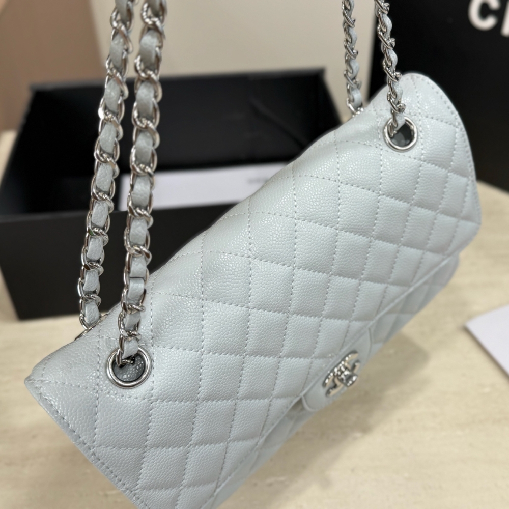 Replica 1:1 – Chanel Classic Double Flap Bag Silver Hardware Baby Blue 25cm