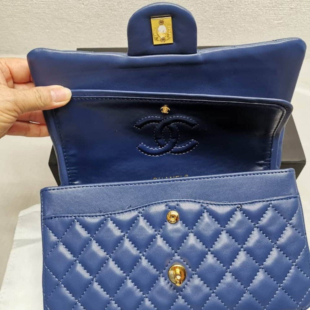 Chanel Classic Medium Flap Navy And Gold