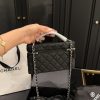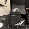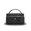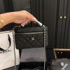 The features the signature diamond quilting and a structured vanity-case silhouette, accented with the iconic CC logo on the front. The design includes a top handle, a zip-around closure, and a chain shoulder strap for versatile carrying. With its compact 19cm size, this elegant piece is perfect for daily outings, travel, or adding a stylish touch to casual and chic looks.