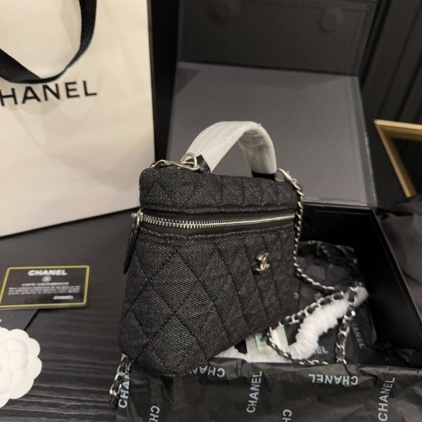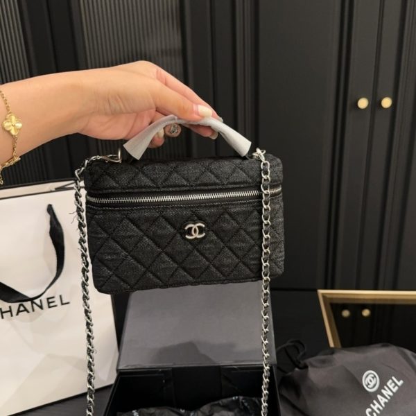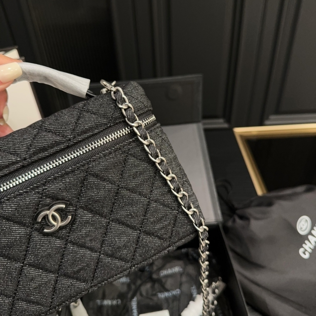 Replica 1:1 – Chanel Classic Vanity With Chain Silver Tone Denim Black 19cm