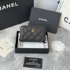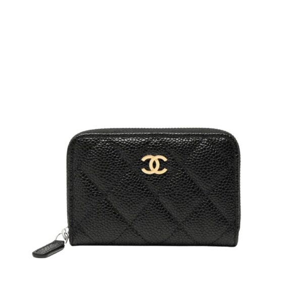 Chanel Classic Zipped Coin Purse Wallet Gold Tone Metal Black