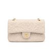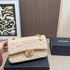 The Chanel Flap Bag in beige leather is a poetic masterpiece, featuring exquisite all-over Camellia flower embroidery—Mademoiselle Chanel’s iconic floral signature. Complemented by a unique gold-tone chain accented with a delicate Camellia charm and the classic CC turn-lock, this bag is a sophisticated blend of romantic heritage and modern luxury.