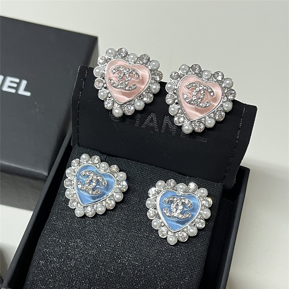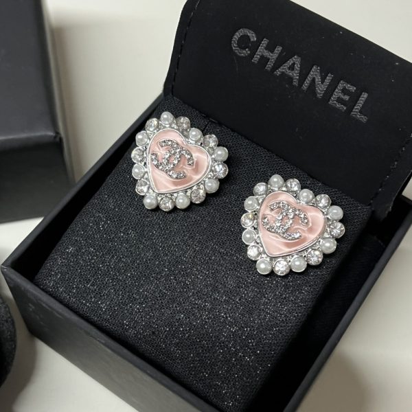 CHANEL HEART MOTIF AND CRYSTAL EARRINGS IN PINK