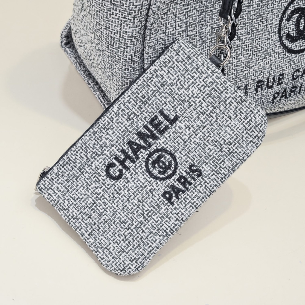 Chanel Large Deauville Tote Bag Bicolor Gray