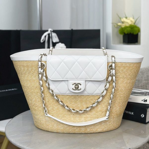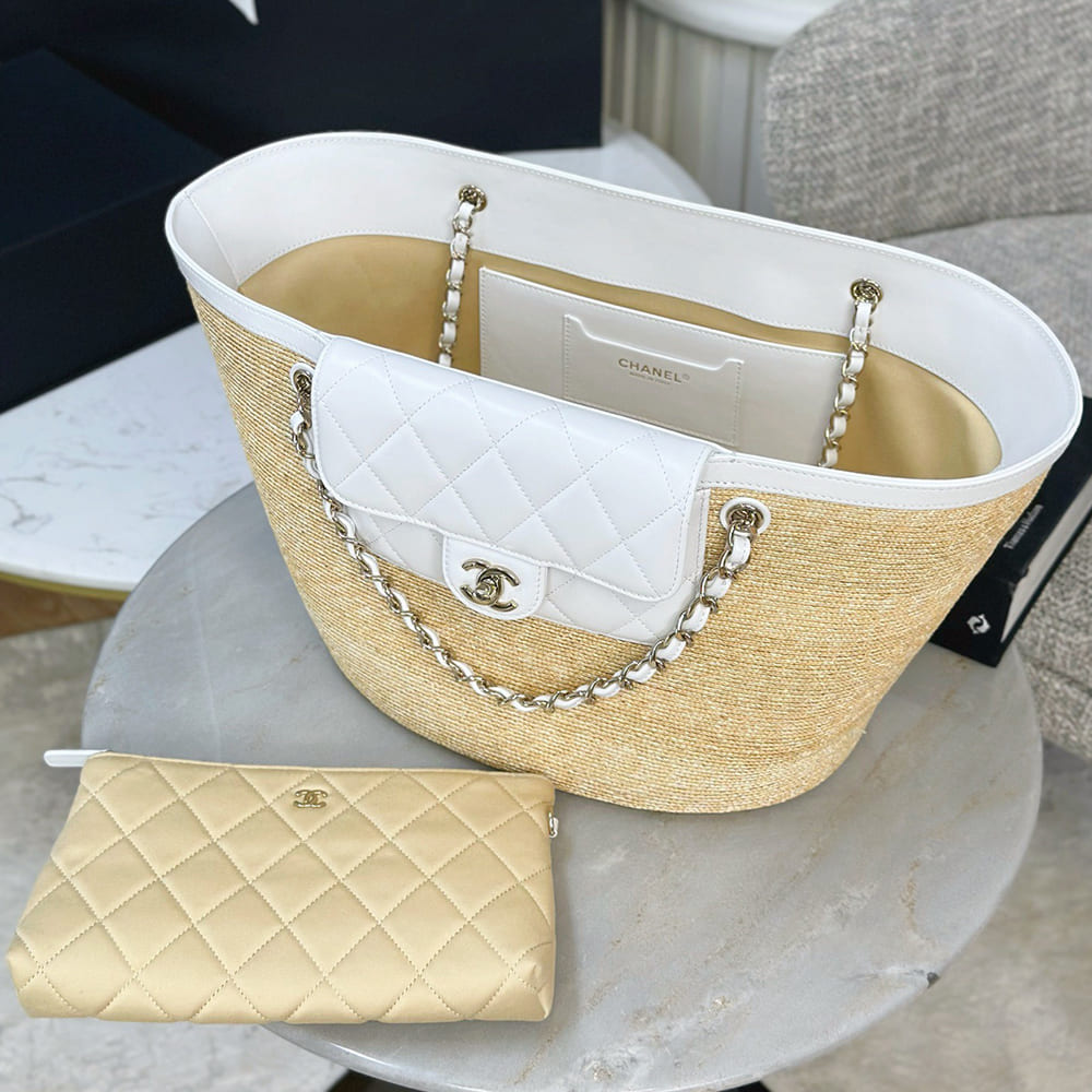 Braided Straw, Lambskin & Gold-Tone Metal