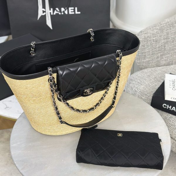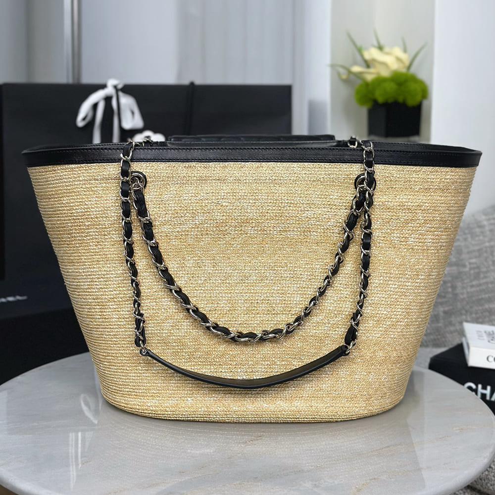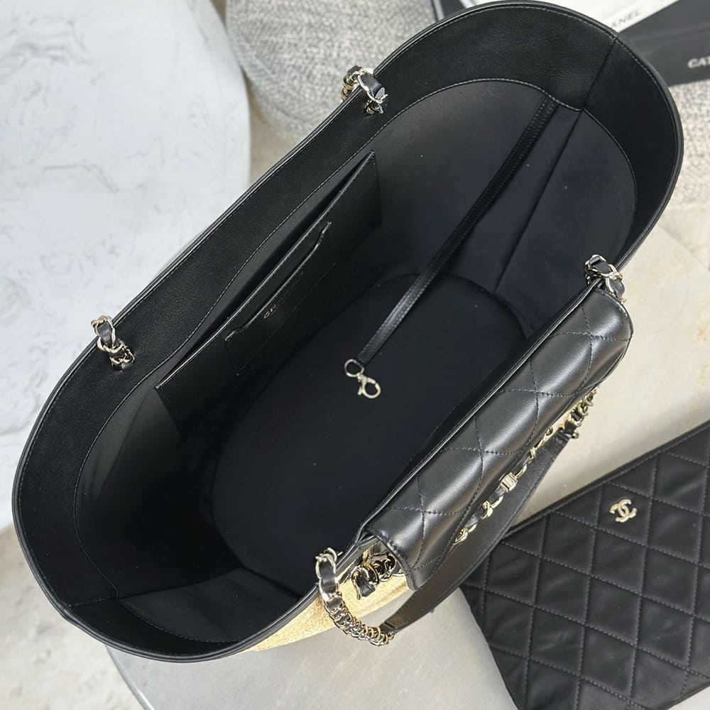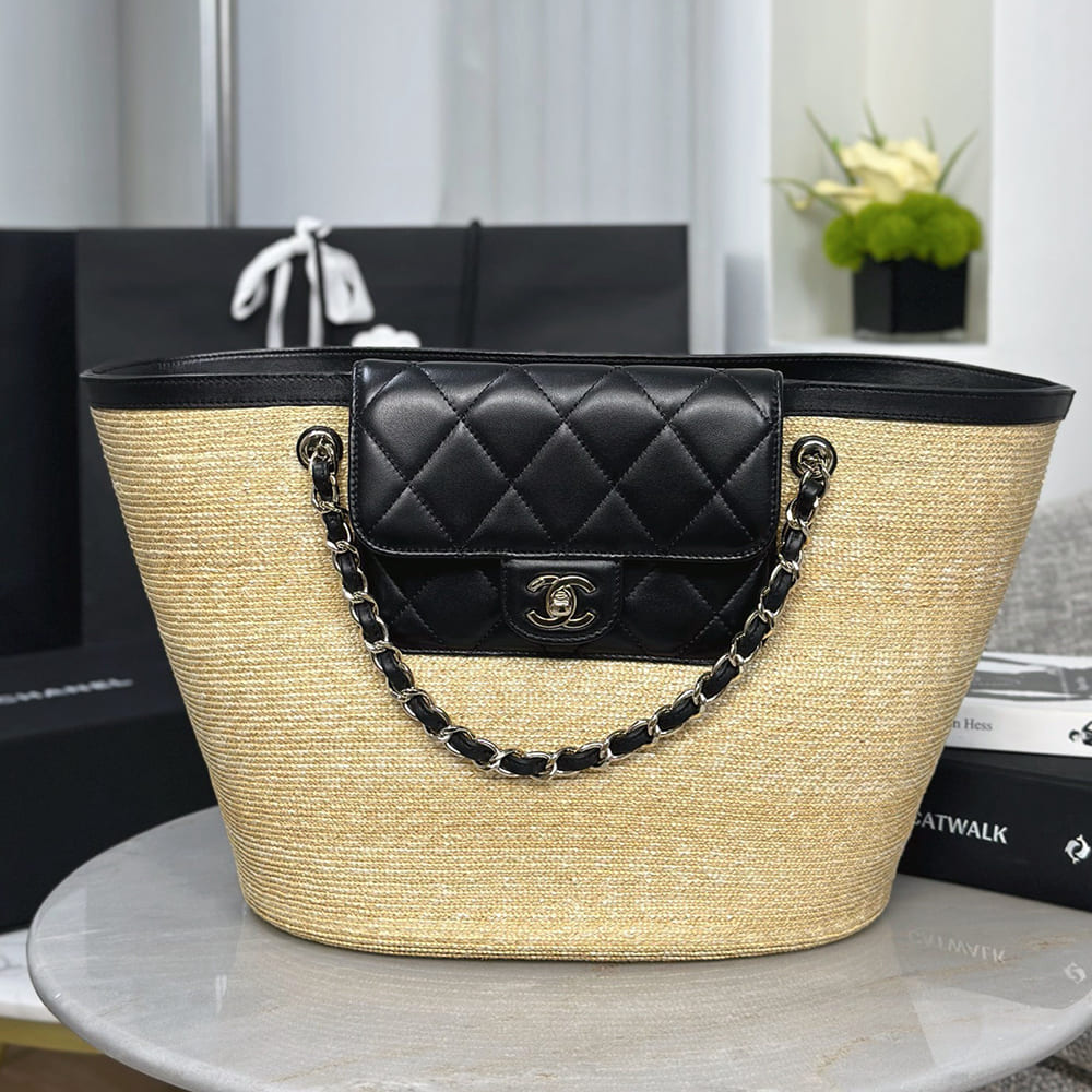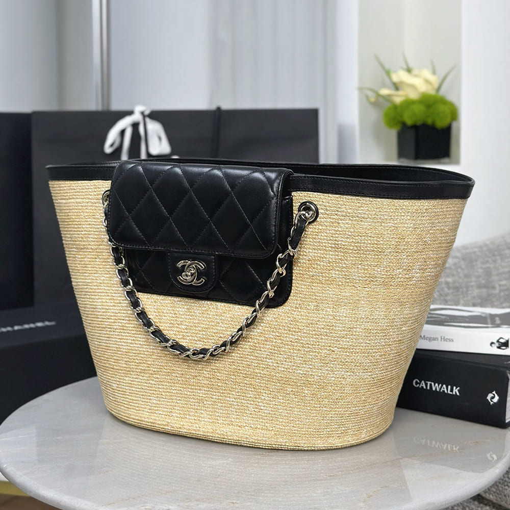 Braided Straw, Lambskin & Gold-Tone Metal