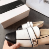 Chanel Leather CC Cap Toe Slip On Loafers White