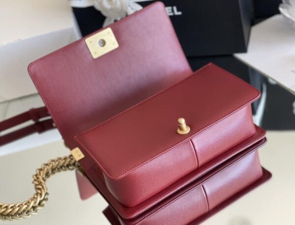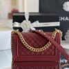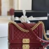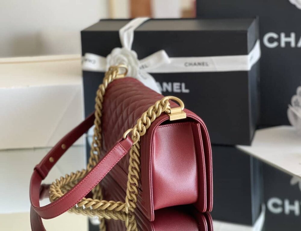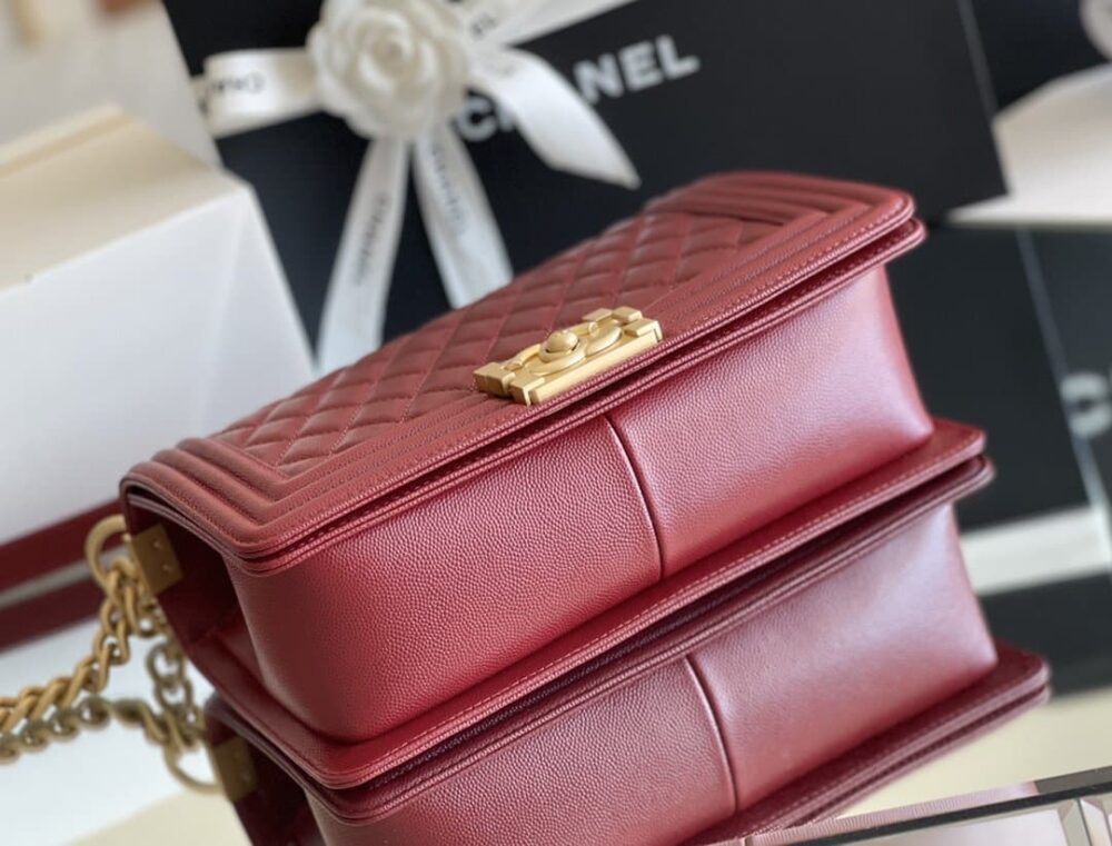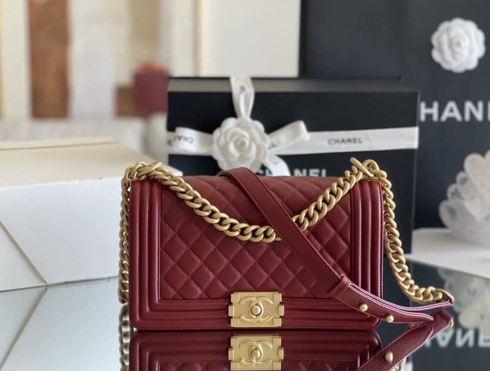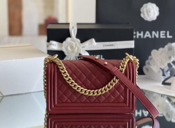 The Chanel Medium Boy Handbag in red radiates bold elegance with its quilted design, structured silhouette, and striking gold accents. A powerful symbol of prestige, it adds a touch of modern allure and timeless sophistication to any ensemble.