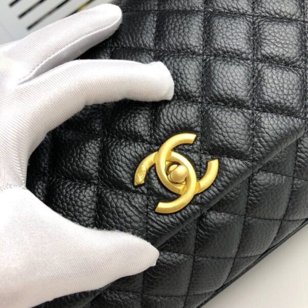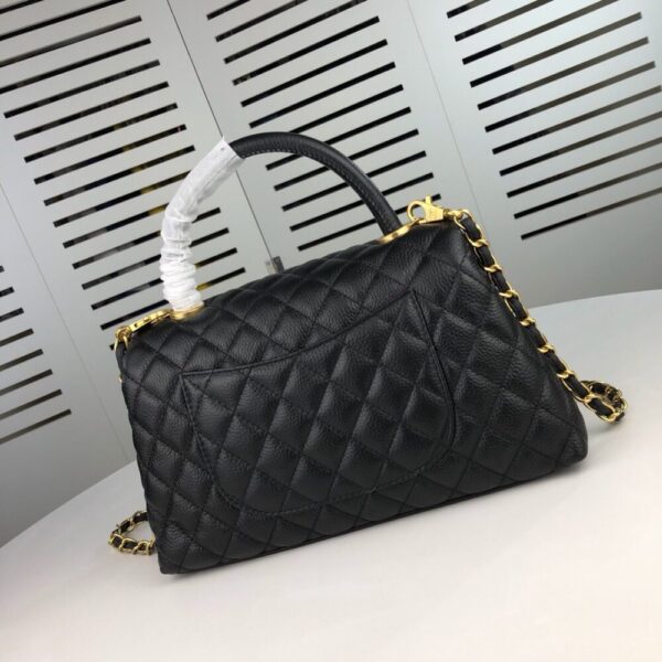 The Chanel Medium Coco Flap Bag with Top Handle embodies timeless elegance with its refined silhouette and signature quilting. Accented by the iconic interlocking CC and a graceful top handle, it exudes prestige and sophistication, affirming your elevated sense of style.