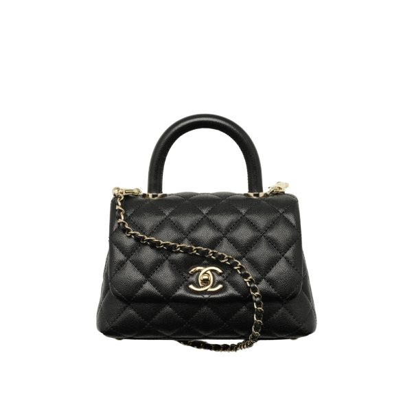 Replica 1:1 – Chanel Mini Flap Bag With Top Handle Shiny And Gold Tone Metal Black 15Cm AS2215 B05061 94305