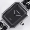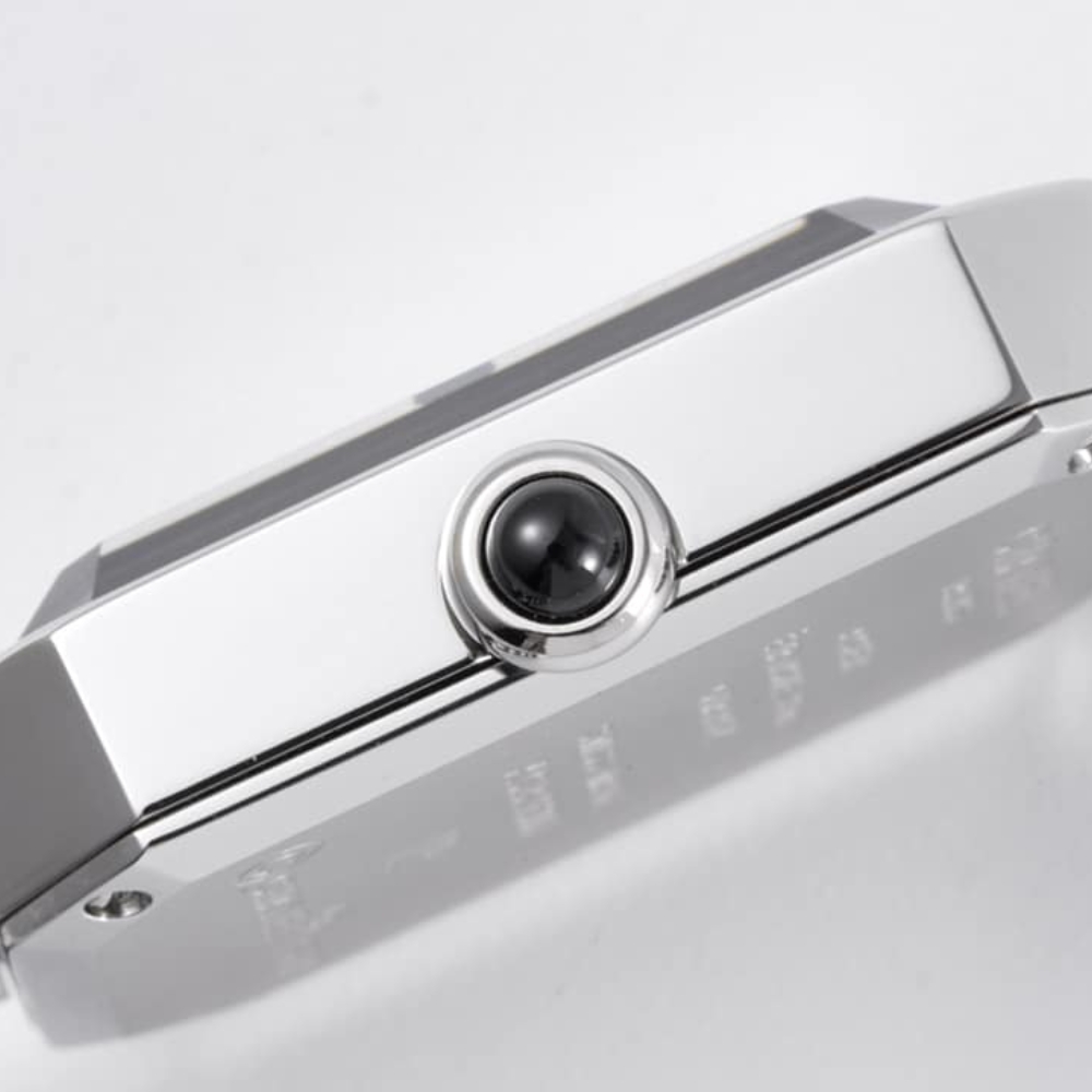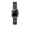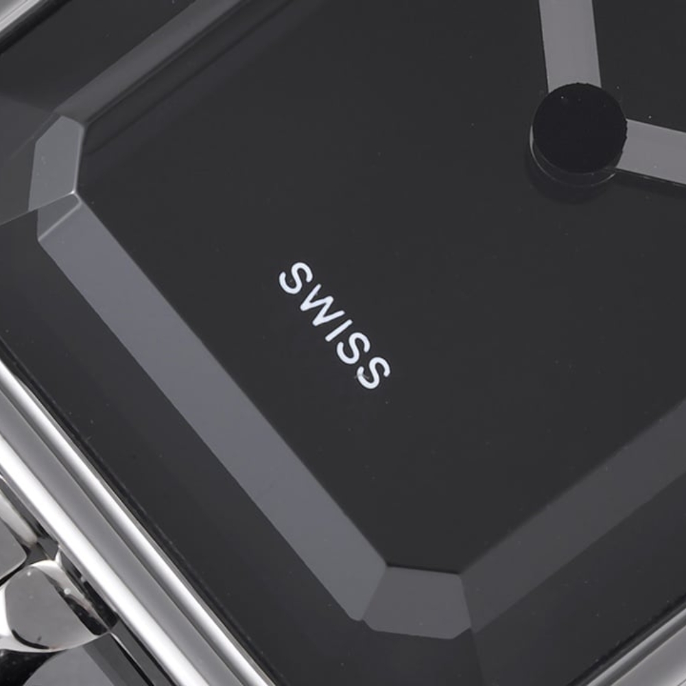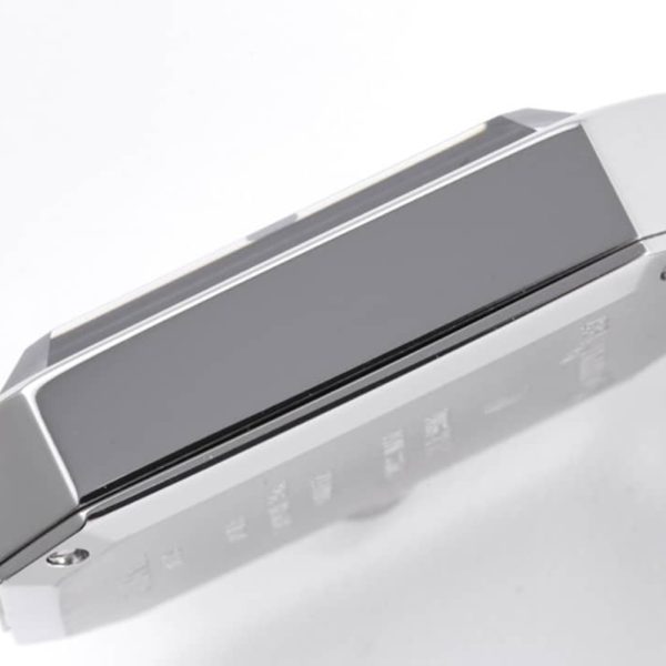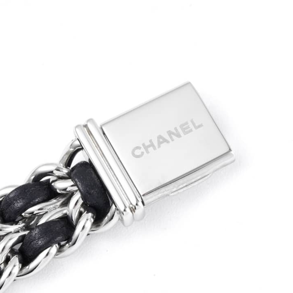 - Strap: Steel chain bracelet, interwoven with a black leather ribbon