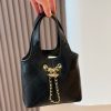 - Strap & Handles: Integrated double leather top handles and a leather-threaded gold chain shoulder strap