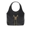- Design: Compact shopping tote design with integrated leather handles and a decorative interlocking CC chain charm on the front