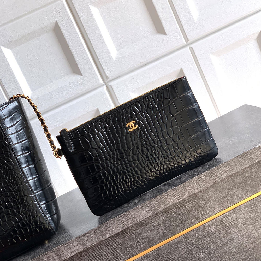 Crocodile Embossed Calfskin & Gold-Tone Metal