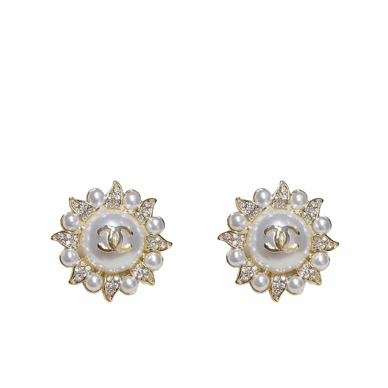 CHANEL SUNBURST PEARL AND CRYSTAL EARRINGS IN GOLD TONE quantity