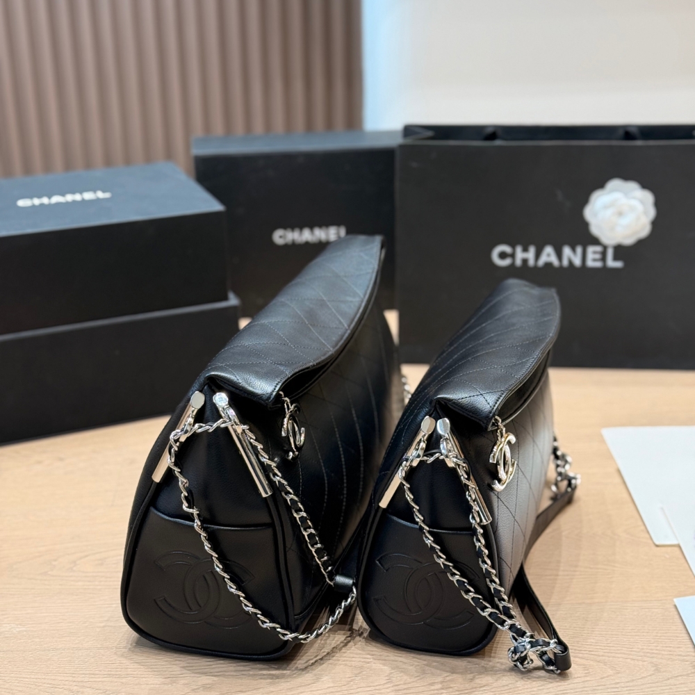 Replica 1:1 – Chanel Ultimate Soft Hobo Bag Silver Hardware Black 38Cm