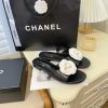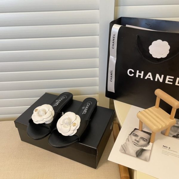 Chanel White Camellia Slides Black