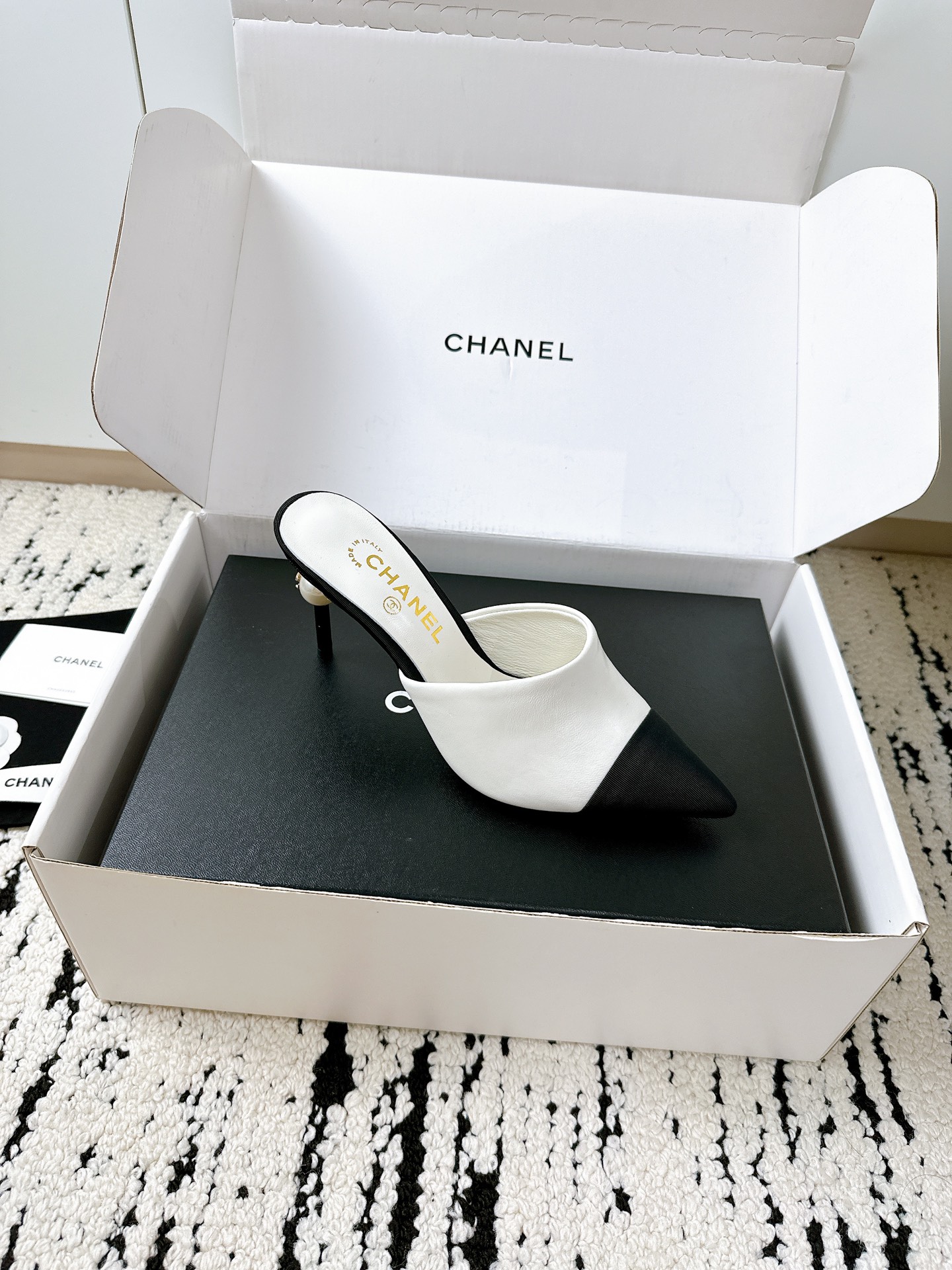 Chanel White Leather and Fabric CC Faux Pearl