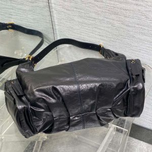 The size is suitable for a pouch, a phone, a wallet, two card holders, sunglasses and lipstick
