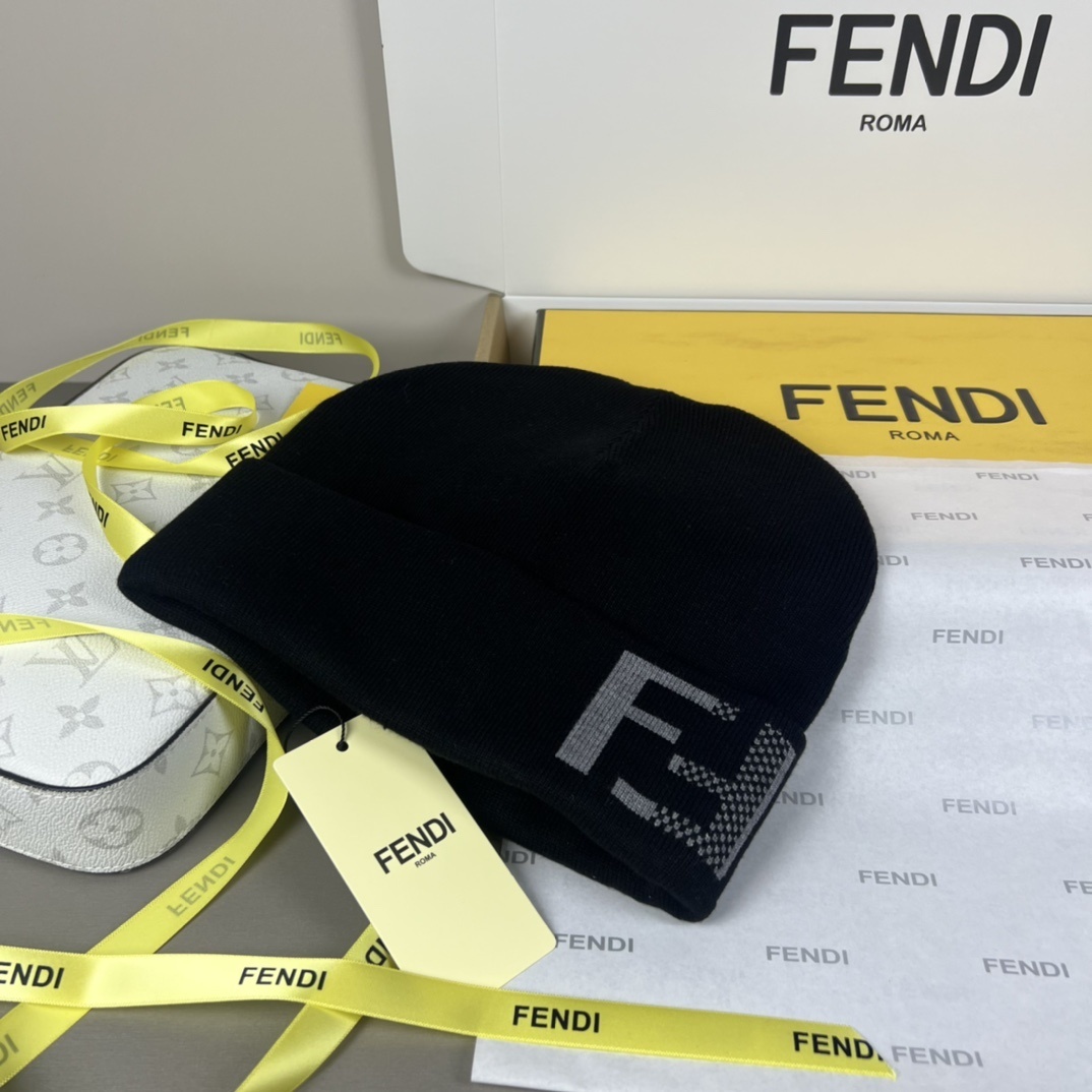 FENDI BEANIE BLACK WOOL HAT BLACK