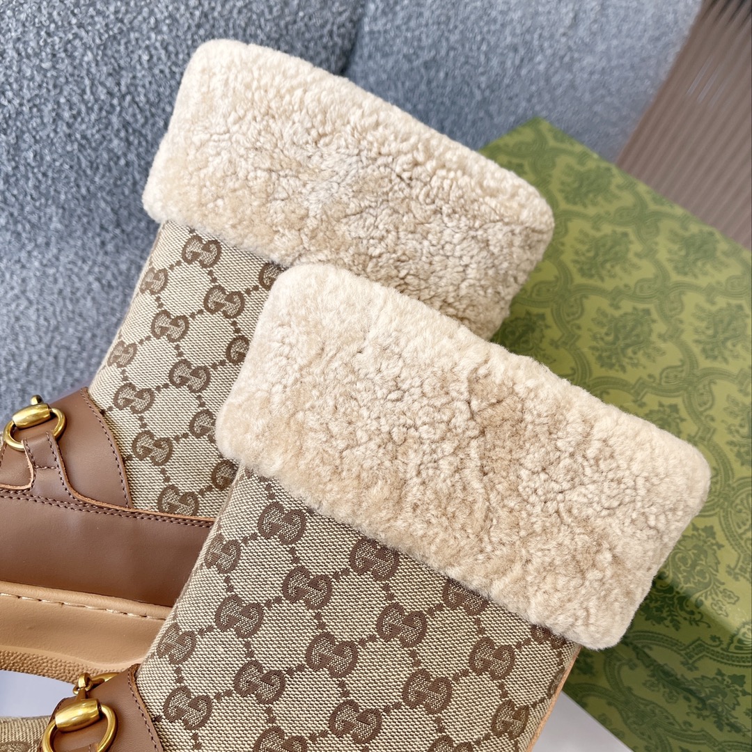 GUCCI 1955 HORSEBIT SNOW BOOTS GG CANVAS IN BROWN