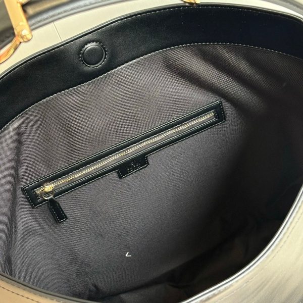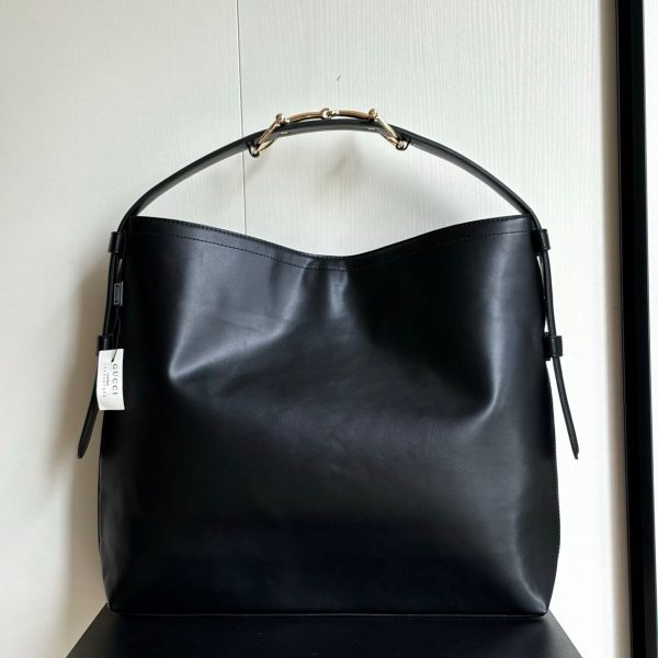 - Horsebit detail on the shoulder strap