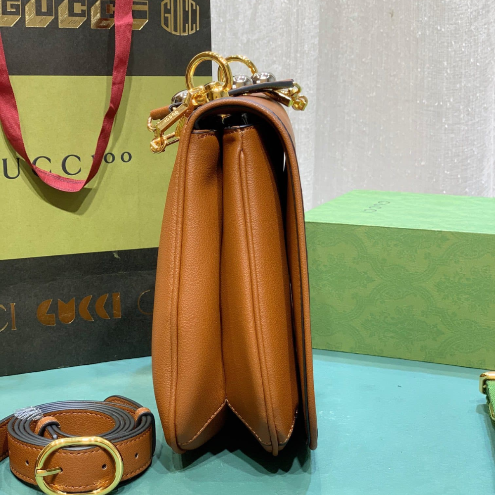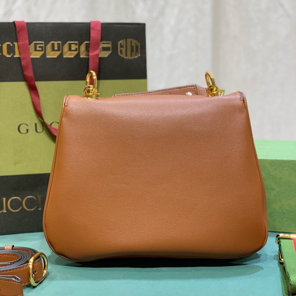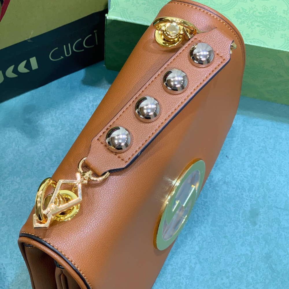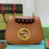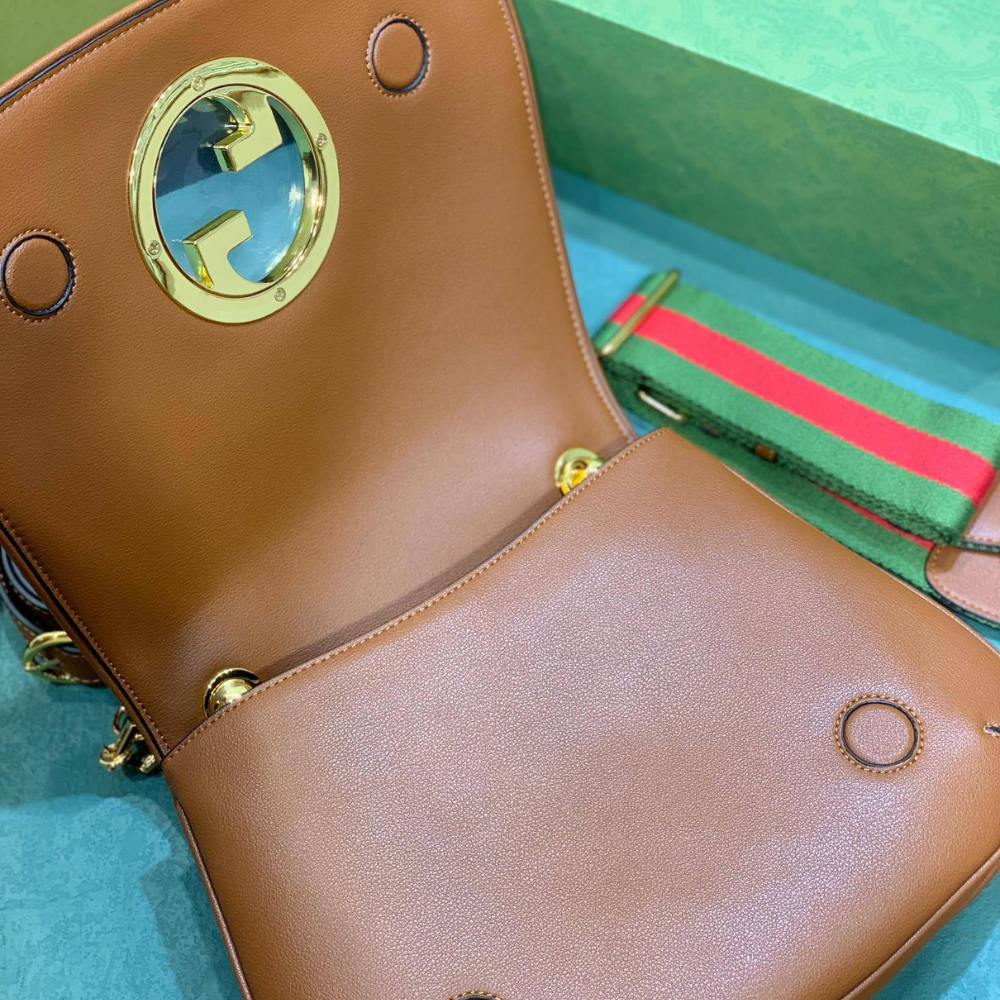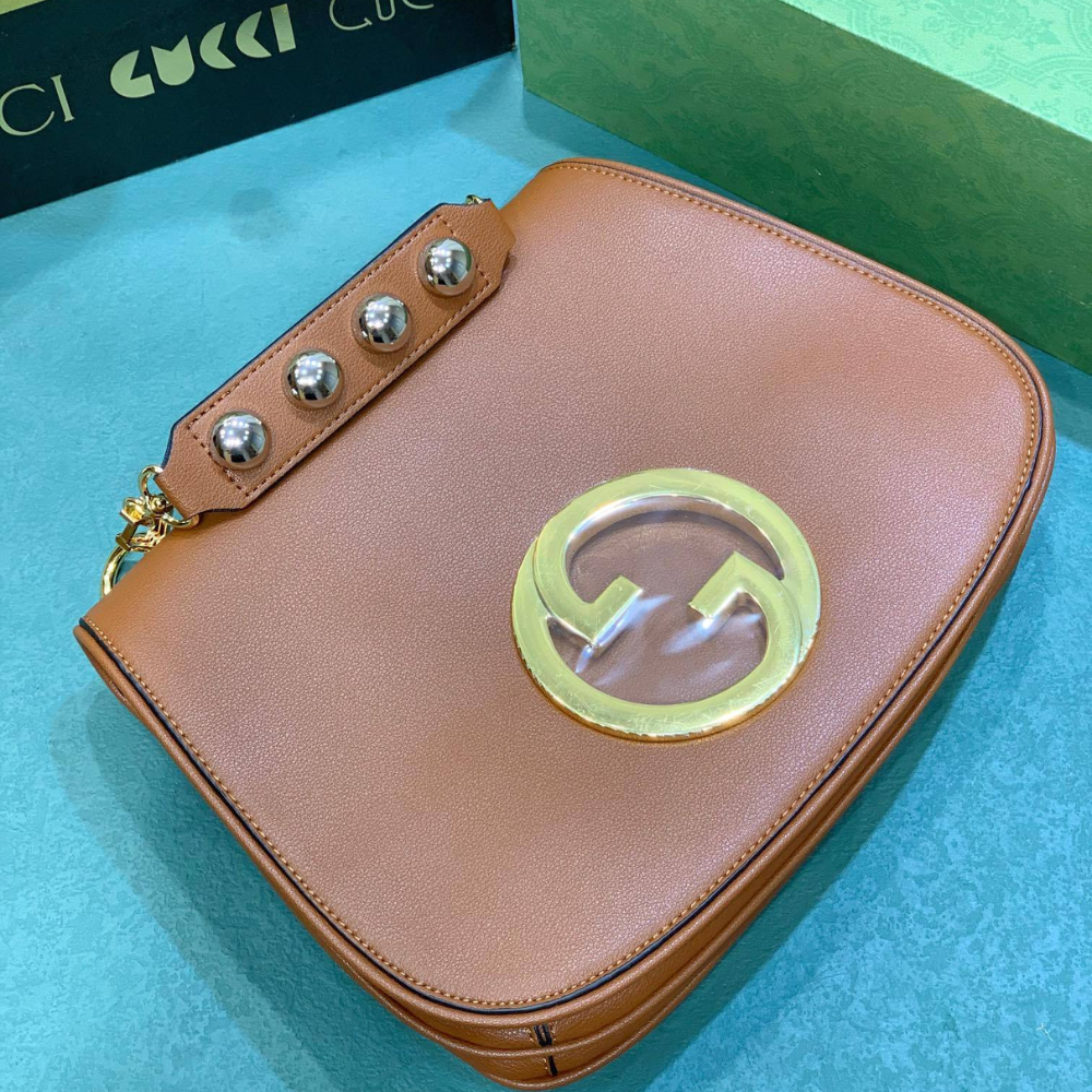 The Gucci Blondie shoulder bag is the kind of companion you wonât want to leave the house without. Itâs made from grained brown leather and is topped with gleaming GG logo insignia.