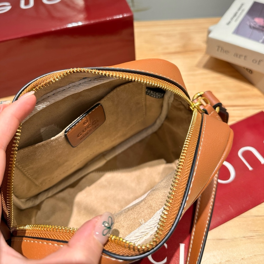 This mini shoulder bag from Gucci is crafted from brown leather with a fabric lining and gold-tone hardware. The bag may inspire nights out, but its compact size and go- to ease make this bag an everyday essential.