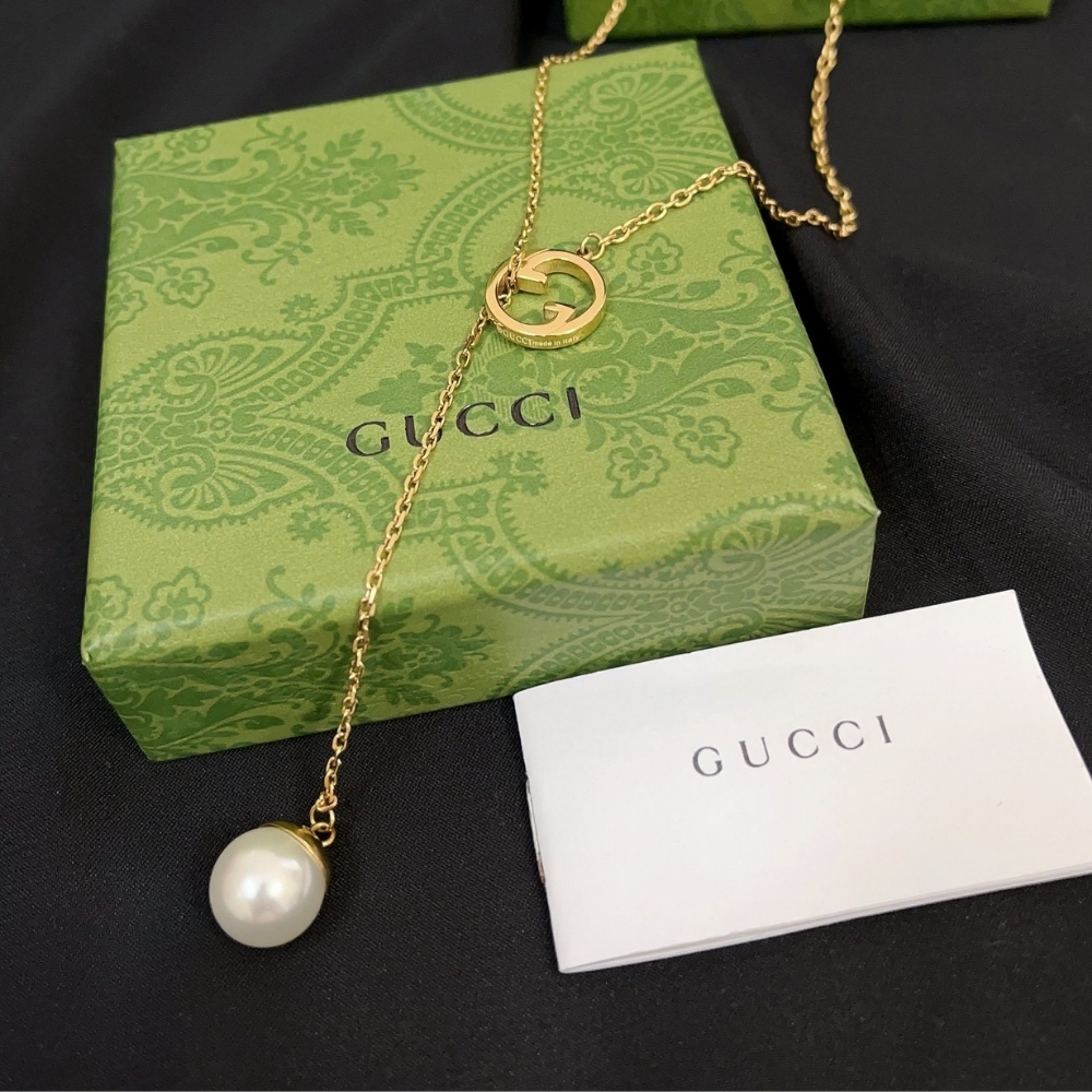 GUCCI BLONDIE PEARL DROP NECKLACE GOLD 774689 I4620 8078