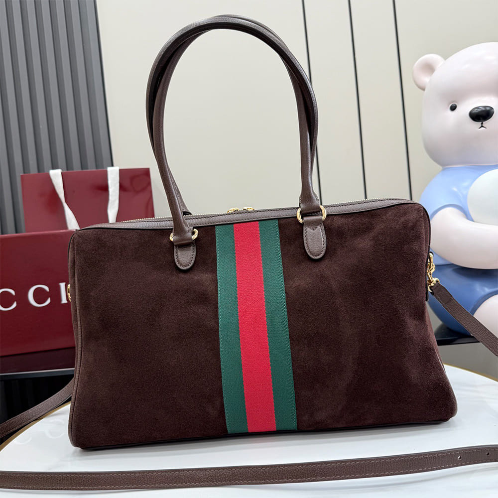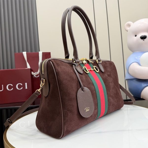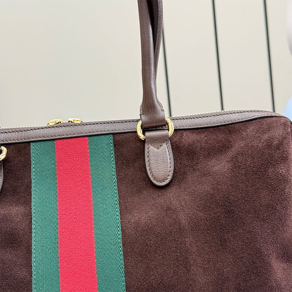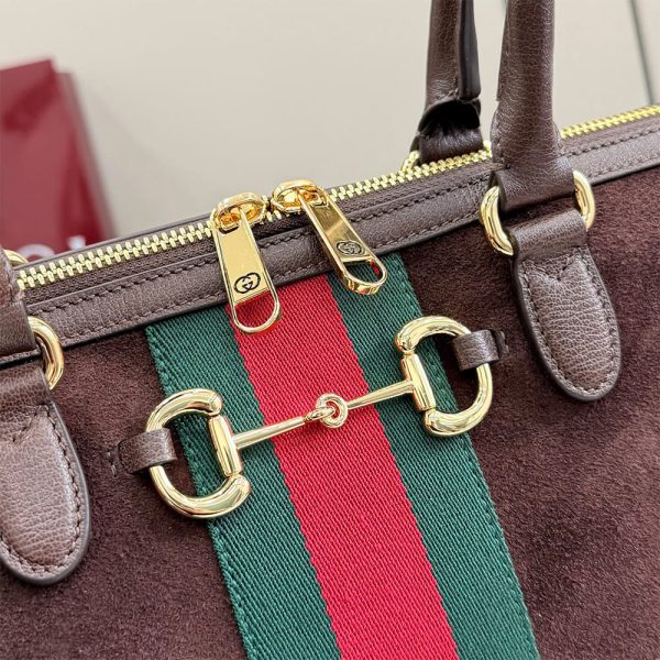 Horsebit, Web, and leather tag with “Made in Italy Gucci” logo