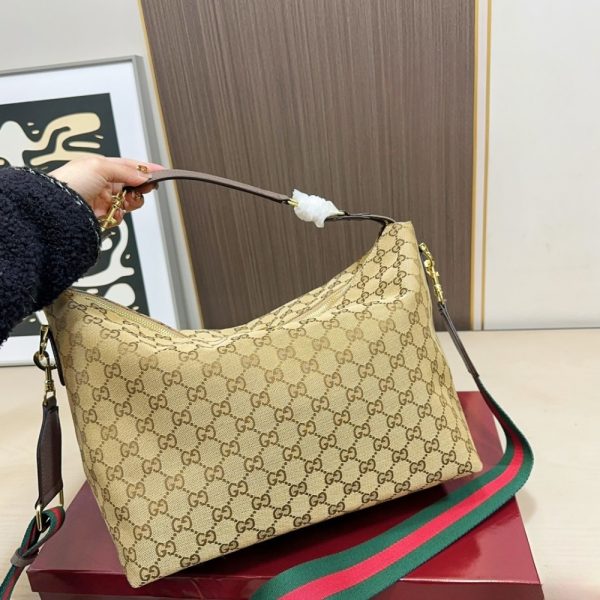 - Design: Hobo-style crossbody bag featuring a curved top, leather trim details, and the signature house Web stripe on the strap